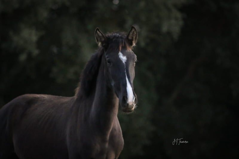 Charming young mare with lots of potential - Breed: Lusitano - Gender: Mare - Year of birth: 2023 - Color: black - Height: 160 cm, estimated final height We are offering an exceptional Lusitano mare for sale that was born in 2023. This young lady not only impresses with her elegant appearance as a black horse with the cream gene, but also with her impressive potential. Another eye-catcher is her pedigree, which includes the famous grandfather ESCORIAL. TINTOREIRA is eager to learn and talented, which makes her a promising candidate for future owners. She will later be versatile and TINTOREIRA is also very interesting for breeding. The young mare is currently being reared in a species-appropriate environment where she can grow in peace and is provided with the best feed. It goes without saying that she is very compatible with older and younger mares in the herd. I can send you more pictures and videos if you are interested.