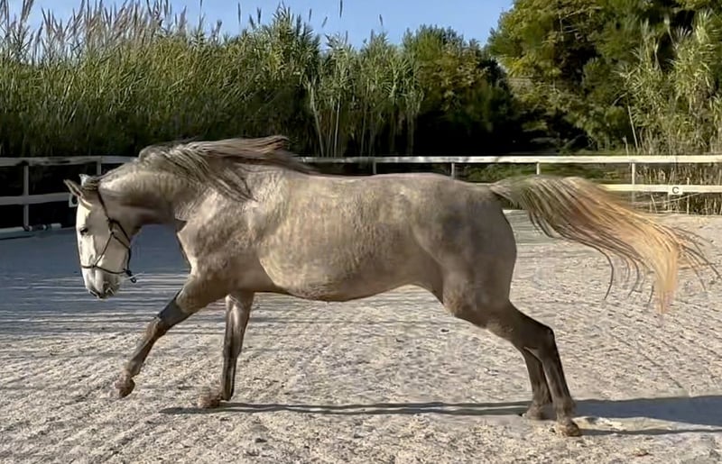 **For sale: Beautiful Lusitano mare** We are offering an exceptional Lusitano mare for sale: - **Breed:** Lusitano - **Sex:** Mare - Year of birth:** 2022 - **color:** grey - Height:** 160 cm - **Discipline:** Dressage This young, talented mare impresses with her elegance, her sweet nature and her potential. She has not yet been broken in but is exemplary in handling. She is ideal for ambitious riders looking for a horse with a promising future. She has a special Lusitano bloodline, as her sire and grandsire are recommended by the APSL as 4-star stallions. If you are interested, we look forward to hearing from you!