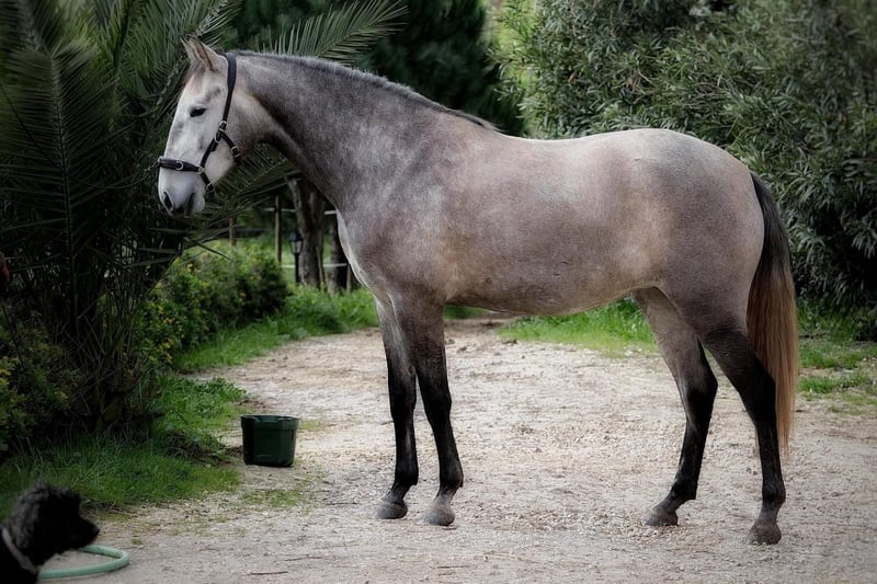 **Annonce de vente : Magnifique jument lusitanienne**. Nous proposons à la vente une jument lusitanienne exceptionnelle : - **Race:** Lusitano - **sexe:** jument - **année de naissance:**2021 - **couleur:** gris - **mesure au garrot:** 160 cm - **discipline:** Dressage Cette jeune et talentueuse jument séduit par son élégance, son caractère adorable et son potentiel. Elle n'est pas encore débourrée mais est exemplaire dans son approche. . Elle convient parfaitement aux cavaliers ambitieux qui recherchent un cheval à l'avenir prometteur. Elle a une ligne de sang lusitanienne particulière, car son père et son grand-père sont recommandés par l'association d'élevage (APSL) comme étalons 4 étoiles. Si vous êtes intéressé, n'hésitez pas à nous contacter !