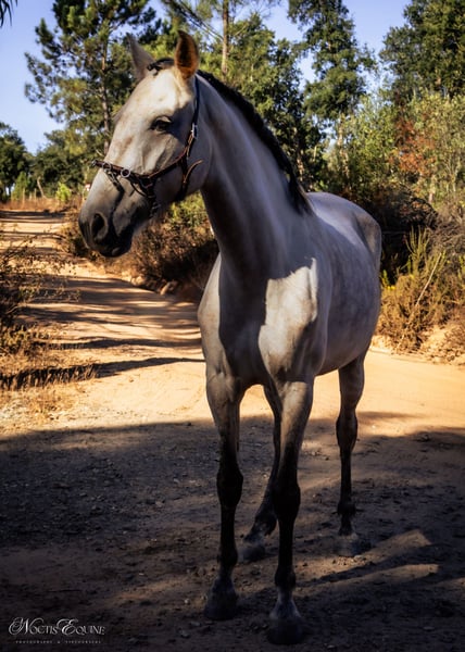 Su paso ancho y muy natural, su trot activo y su galope extremadamente armonioso y ascendente ya destacan desde potra, bailando junto a su madre. Actualmente se encuentra en el nivel de entrenamiento fundamental según el programa de Vale de Água (https://www.quintavaledeagua.com/index.php/va-lusitanos/breeding-development). Su respuesta calmada y segura a las ayudas de las piernas y el peso en la silla es una de sus mayores fortalezas. Su conformación naturalmente ascendente la convierte sin duda en una excelente compañera para la doma o la equitación de trabajo. Sobre VA Lusitanos: Criamos nuestros caballos con cuidado; los potros nacen en el campo, crecen en manada en terrenos ondulados, con árboles, arbustos, zonas abiertas, ríos y un pequeño lago, lo que les permite familiarizarse y confiar en diferentes tipos de entorno. Siempre disponen de heno de buena calidad y su ración de granos y minerales. Aprenden comportamientos sociales positivos de sus madres, tías y de la manada, además de la interacción social con otros caballos y la interacción diaria con humanos, que es una parte fundamental de su educación. Gracias a la interacción frecuente con nuestros caballos, desarrollan una profunda confianza en las personas, lo que facilita todas sus interacciones tanto con humanos como con otros caballos. Nuestros clientes confirman una y otra vez que nuestros Lusitanos destacan por su confianza, tranquilidad y facilidad de manejo en cualquier situación. Creemos que el caballo lusitano necesita tiempo para madurar y desarrollar su estructura ósea y muscular, por lo que evaluamos a cada VA Lusitano a partir de los 4 años de edad. Pipa VA comenzó su entrenamiento a los 5 años, primero en la cuerda y en mano, y desde hace un año también bajo la silla. Actualmente no está inscrita como yegua de cría, pero consideramos que podría ser una excelente madre y yegua reproductora. Disponemos de diferentes VA Lusitanos en distintas edades. Caballos jóvenes, entrenados en mano y bajo la silla. Puedes consultar una visión general de nuestros lusitanos en nuestra página web. Además, ofrecemos alojamientos de alta calidad para nuestros clientes. Cuando compras un caballo con nosotros, tu estancia en uno de nuestros lujosos alojamientos es gratuita (máximo 5 noches). https://www.quintavaledeagua.com