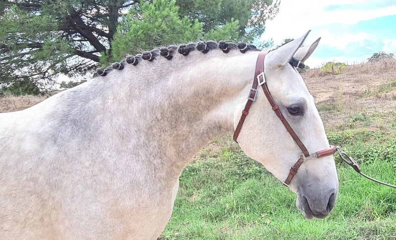 🌿 Zu verkaufen – Oliva JCL, lusitanische Dressurstute mit vollständigen Papieren *geboren 2018* Oliva JCL ist eine wunderschöne lusitanische Stute, die Eleganz, Einsatzbereitschaft und Großzügigkeit im Training vereint. Sie ist gut ausgebildet im Dressurviereck, zeigt sehr schöne Bewegungen, große Flexibilität und einen echten Willen, es richtig zu machen. Ihre Stärken: • Hervorragende Grundlagen im Dressurtraining mit vielversprechendem Entwicklungspotenzial • Ausgeglichenes, stabiles und williges Wesen • Guter Kontakt zum Boden sowie unter dem Sattel • Ideal für einen ernsthaften und motivierten Reiter, der im Dressurtraining Fortschritte machen möchte Empfohlene Reiterfahrung: Fortgeschritten Gesundheitszustand: gesunde, ausgeglichene Stute, sowohl körperlich als auch geistig fit Oliva ist eine zuverlässige Partnerin, bereit, sich an die Seite eines leidenschaftlichen Reiters zu entwickeln.
