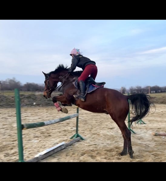 Korynt to koń o fajnym charakterze, przyjacielski, bezproblemowy w obejściu. Fajny lekki ruch. Lubi skakać, współpracujący z człowiekiem. W terenie bezproblemowy. Zdrowy, nigdy mu nic nie było. Nie kulał, nie kaszlał. Regularnie werkowany. W transporcie bezproblemowy.