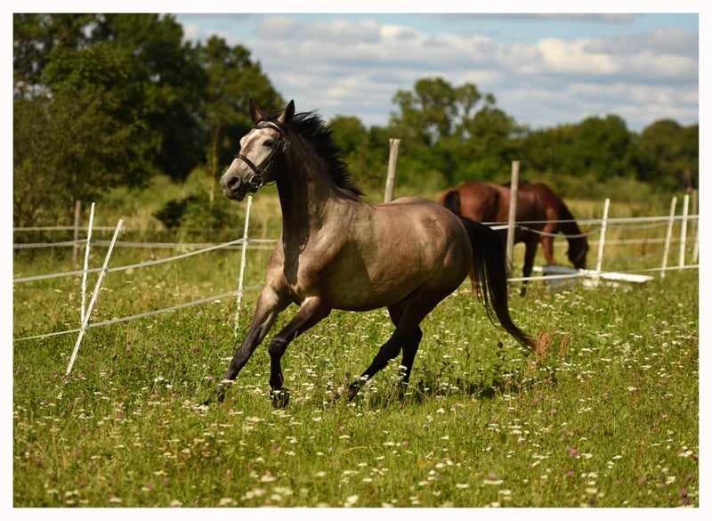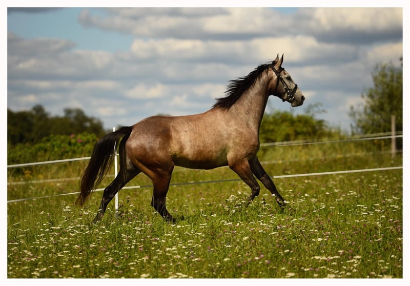 Young promising gelding for sport. Age 5 years, 16.1 hh. Malopolska breed. The horse was started late and has been in training for over six months. Diaskar is a well-behaved gelding, gentle on the aids, consistently forward-moving, active, he doesn’t need to be pushed but also doesn’t rush to the jumps. He clears individual obstacles up to 100 cm and can do courses up to 80 cm. Trained by a qualified horse trainer. Currently being prepared for his first competitions. Very friendly, seeks contact with people. No cribbing, weaving, kicking, bucking, or rearing. Calm during grooming, saddling, washing, and farrier work. Under regular care of a physiotherapist, regularly treated with Bemer blanket. No illnesses or injuries. Good Malopolska pedigree (including Emetyt, Kwartet, Przedświt, Furioso). The pony works very well on the ground: shoulder-in, hindquarters, backing up, circles, changes of direction, active halts, following the rider, and working with props. Works on double lunge line. The pony is young and requires an experienced rider due to his age, but he is not malicious or unpredictable, so a capable child transitioning from a pony, a teenager, or a rider with some experience can handle him well. Good prospect for show jumping or eventing – thanks to his pedigree, he has suitable aptitudes, but he’s also suitable for endurance riding due to his good condition and stamina. He can be somewhat skittish (less so with training) and requires a steady and gentle hand – gentle on the face. I invite you for a test ride. Located near Olsztyn. Contact: 605788755.