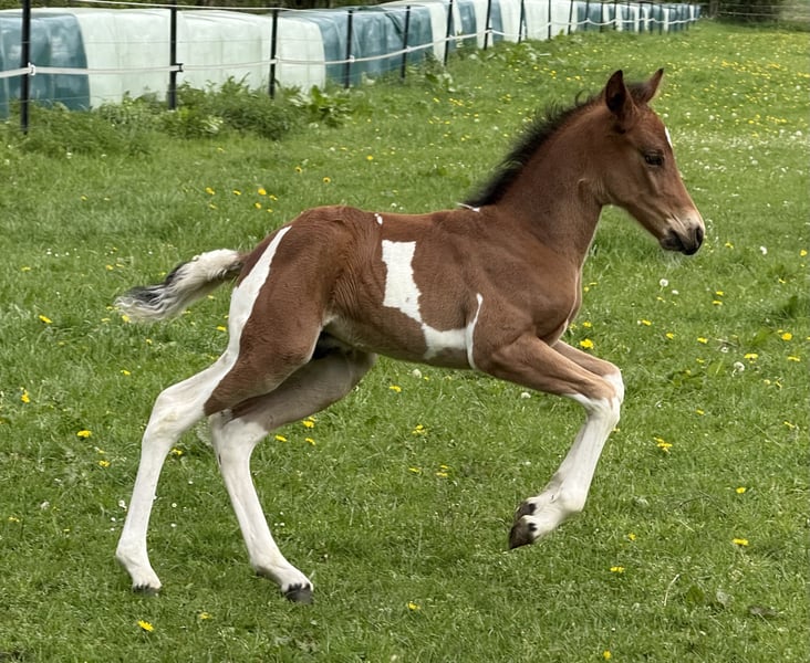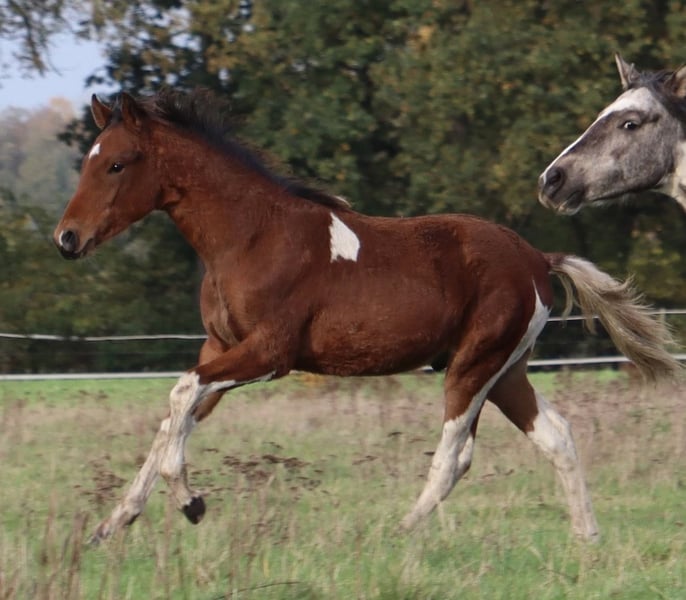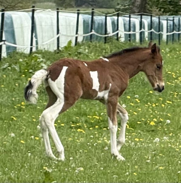 Enio vom Hartungshof gelang es vom ersten Lebenstag an mich "um den Finger zu wickeln", dermaßen viel "Will to please", Präsenz und Neugier ab Tag 1 gibt es bei einem Fohlen selten. Und so ist es auch geblieben, er findet es toll, wenn man sich mit ihm beschäftigt. Dazu kommt eine sehr gute Gangveranlagung zu Marcha Batida und Marcha Picada, ein guter Schritt und eine gut gesprungene Galoppade. Er wird körperlich nicht der größte werden sondern bei ca.150cm Stockmaß ausgewachsen sein. Wie alle unsere Fohlen hat er das Fohlen ABC gelernt, ist gegen Tetanus, Influenza und Herpes geimpft und regelmäßig entwurmt. Hufkorrektur findet bei uns alle 7 Wochen statt. Enio lebt in einer Gruppe von ca. 20 Pferden im Alter von 6 Monaten bis 29 Jahren in Offenstall, Paddock und auf großer Weide. "Kindergarten" und "Erziehungsberechtigte" zusammen, das ergänzt sich gut.