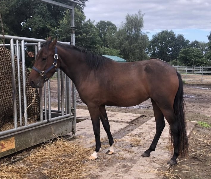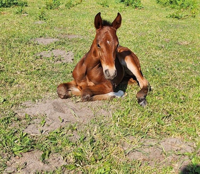 Afra is a very attractive, well-muscled young chestnut mare with a confident demeanor and plenty of presence. She is human-oriented and has been raised appropriately for her age (halter-trained, able to be trimmed, and accustomed to being tied up, though not for extended periods yet). Her gait tendencies include Marcha Batida and Marcha Picada, and she demonstrates a remarkably good canter for a gaited horse. It can be safely said that she requires loving yet consistent further training to become a wonderful partner for all situations, "thick and thin." I have not listed her for sale until now, as I intended to keep her for further breeding. However, I ultimately have to accept that I need to reduce my horse herd due to age and especially health reasons. This is also why there are only a few photos of her from 2024 and 2025.