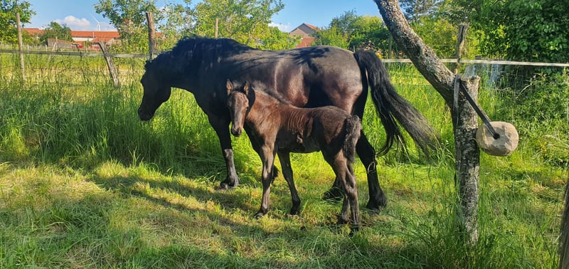 Mérens 🖤 geboren 2025 – Hengst – Vollpapiere Zum Verkauf oder zur Überlassung für Zuchtprojekt 🗺️ PRAKTISCHE INFORMATIONEN: * 📍 Standort: Elsass (geboren in Lothringen). * 🌿 Ausbildung & Sozialverhalten: Fohlen im Umgang gewöhnt, in einer Herde aufgezogen, mit einem sanften, respektvollen Absetzprozess Ende 2025. 📏 MODEL & TEMPERAMENT: * 📏 Geschätzte Endgröße: maximal 1,50 m. * 💪 Morphologie: Gut gebauter, quadratischer Körperbau mit kräftigen Schultern und Hüften, kurzer Rücken. Sehr tragfähige Konstitution. * 🐎 Ästhetik: Reine Farbe ohne weiße Abzeichen, bereits gut ausgebaute Mähne. * 🤝 Charakter: Ein ausgeglichener, geduldiger Junghengst, wirklich freundlich und liebenswert. 🧬 GENETISCHE SELEKTION: Modell, Vielseitigkeit & Sportlichkeit * 🏅 Mutter: Von Kerry Piper (HN), Nachkomme des großen Don Juan d'Olmes (Championschimmel der Rasse). * 🏆 Vater: Fiero de la Croux, Nachkomme des berühmten Isatis de Sie (Champion Supreme, IDR 138, Sieger im internationalen TREC, 90 km Geländereiter). * 🐎 Abstammung: Mutter und mütterliche Schwester in Lothringen sichtbar. * 💎 Zukunftsperspektive: Aufgrund seines Pedigrees und seines Körperbaus besitzt er ein echtes Potenzial als Zuchtstute. POTENZIELLE DISZIPLINEN: * 🚵 Aktivitäten: Ideal für Wanderritte, TREC, Mountain Trail oder vielseitigen Freizeitsport. * ✨ Vielseitigkeit: Vielversprechendes Profil für Kutschfahrten, Dressur und Ausdauer, basierend auf den Fähigkeiten seiner Verwandten. CONDITIONS: * 💰 Verkauf: Seriöse Angebote werden geprüft. * 🤝 Überlassung: Denkbar zur Zucht- oder Wertsteigerungszwecken. * 🚛 Transport auf Ihre Kosten möglich 📩 Weitere Details per Privatnachricht.