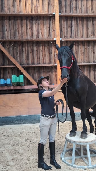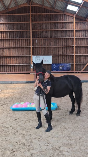 JAZZY DES CIMES ✨ The perfect blend of elegance and versatility ✨ Jazzy is more than just a mare: she is a reliable, willing, and sensitive partner, dedicated to fulfilling your desires—and your heart. She embodies the rare combination of grace and rusticity. With her deep black coat and harmonious presence, she immediately captures attention. But it’s her gentle and balanced temperament that makes her truly endearing: attentive, trustworthy, and eager, she is the ideal companion for moments of mutual understanding. A prestigious lineage Born from a renowned bloodline, Jazzy des Cimes is the daughter of Ornoir du Souleilla Mer, a double Mérens champion known for his strength and charisma. In her career? She moves forward with curiosity and serenity, demonstrating impressive versatility for leisure riding, driving, or trail riding. Out in the field? Always calm and composed, Jazzy des Cimes is receptive and reassuring, making her a true pleasure to ride during outdoor excursions in nature. Education Alegria – Relationship of Complicity® Raised with respect for each horse’s individual rhythm, Jazzy des Cimes has benefited from the Alegria – Relationship of Complicity® approach, where every interaction is designed to foster a sincere and lasting bond. Gentle learning, attentive listening, and positive education make her a receptive and committed partner, ready to forge a strong connection with her future rider. ✨ A mare like Jazzy isn’t looking for just any owner. She’s waiting for a genuine encounter. --------------- ALEGRIA – Find the horse of your dreams and build a unique relationship based on trust and mutual understanding. At Alegria, we know that buying a horse is much more than a simple transaction. It’s about finding a life partner with whom you can develop a solid, fulfilling relationship. We offer expert guidance at every step, so you can make an informed choice and start this journey with confidence. Why choose Alegria? A personalized support to help you find the right horse. We assist you in selecting a horse that matches your personality, expectations, and skills, ensuring that the bond you develop is smooth and natural. ✨ Our team of experts advises, guides, and supports you throughout the process so you can make a well-informed decision without haste. Horses raised in an environment conducive to their well-being. Our horses are bred in exceptional conditions, where they benefit from gentle, respectful training based on our exclusive “Relationship of Complicity” method. Each horse is prepared to be a reliable, responsive, and balanced partner, ready to build a trusting relationship with you. Quality care to ensure optimal health. The well-being of our horses is our top priority. They are regularly monitored by animal health professionals—veterinarians, osteopaths, farriers, and dentists. This medical oversight guarantees that your horse will be in excellent condition, ready to start this new relationship with you under the best possible circumstances. Transparent progress reports. Each horse has a detailed progress sheet that provides insight into its exact level, strengths, and character. This transparency gives you all the tools to choose the horse that aligns with your expectations and the relationship you wish to establish. Ongoing support to help you succeed in this relationship. At Alegria, we believe that a lasting bond isn’t improvised. That’s why we remain by your side after the purchase, offering personalized follow-up to help you develop genuine complicity with your horse. Through our in-person and online training sessions, you will learn to better understand your horse and strengthen the foundations of your relationship. Testimonials from satisfied clients. We have supported hundreds of riders in their projects. 100% of our clients are satisfied with the guidance and the bond they have built with their horses. Their testimonials are the best proof of the quality of our work and the success of the relationships we foster. Find the horse that matches your expectations. Discover our selection of exceptional horses now and start imagining the relationship you will create. Review the progress sheets and let our team of experts guide you to find the horse that meets your needs. Visit our selection of horses at www.alegriacomplicite.com and begin building the relationship you’ve always dreamed of. Alegria – Find the horse that suits you and create a relationship based on trust and mutual understanding.