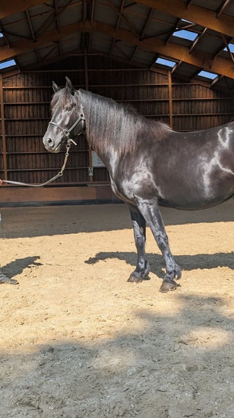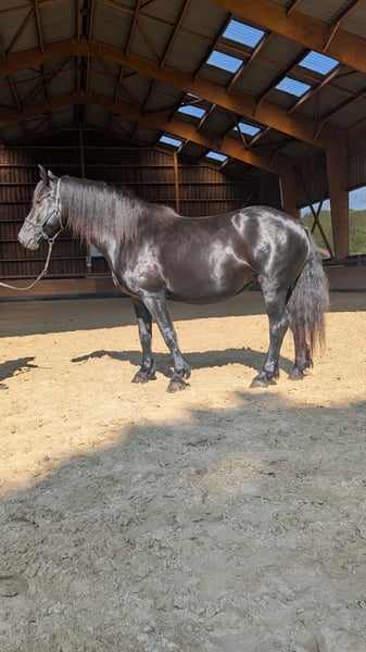 JAZZY DES CIMES ✨ L’alliance parfaite entre prestance et polyvalence ✨ Jazzy, c’est plus qu’une jument : c’est une partenaire fiable, volontaire et sensible, au service de vos envies… et de votre cœur. Elle incarne le mariage rare entre élégance et rusticité. Avec sa robe noire intense et son allure harmonieuse, elle attire immédiatement le regard. Mais c’est son tempérament doux et équilibré qui la rend si attachante : attentive, fiable et volontaire, elle est le compagnon idéal pour des moments de complicité. Un héritage prestigieux Issue d’une lignée de renom, Jazzy des Cimes est la fille d’Ornoir du Souleilla Mer, double champion de la race Mérens, connu pour sa puissance et son charisme. En carrière ? Elle évolue avec curiosité et sérénité, montrant une belle polyvalence pour le loisir, l’attelage ou la randonnée. ️ En extérieur ? Toujours calme et posée, Jazzy des Cimes se montre réceptive et sécurisante, un vrai plaisir pour les balades en pleine nature. Éducation Alegria – Relation de Complicité® Élevée dans le respect du rythme de chaque cheval, Jazzy des Cimes a bénéficié de l’approche Alegria – Relation de Complicité®, où chaque interaction est pensée pour créer une connexion sincère et durable. Apprentissage en douceur, écoute attentive et éducation positive font d’elle une partenaire réceptive et engagée, prête à tisser un lien fort avec son futur cavalier. ✨ Une jument comme Jazzy ne cherche pas un propriétaire. Elle attend une rencontre sincère. --------------- ALEGRIA – Trouvez le cheval de vos rêves et créez une relation unique, fondée sur la confiance et la complicité . Chez Alegria, nous savons que l’achat d’un cheval est bien plus qu’une simple transaction. Il s’agit de trouver un partenaire de vie avec lequel vous allez construire une relation solide et épanouissante. Nous vous offrons un accompagnement expert à chaque étape, pour que vous puissiez faire un choix éclairé et démarrer cette aventure en toute sérénité. Pourquoi choisir Alegria ? Un accompagnement personnalisé pour vous guider dans votre choix. Nous vous aidons à trouver le cheval qui correspond à votre personnalité, vos attentes et vos compétences, pour que la relation qui se tisse avec lui soit fluide et naturelle. ✨ Notre équipe d’experts vous conseille, vous guide et vous accompagne dans votre démarche afin que vous fassiez un choix éclairé, sans précipitation. Des chevaux élevés dans un environnement propice à leur bien-être. Nos chevaux sont élevés dans des conditions exceptionnelles, où ils bénéficient d’une éducation douce et respectueuse ️, fondée sur notre méthode exclusive "Relation de Complicité". Chaque cheval est préparé pour être un partenaire fiable, réactif et équilibré, prêt à bâtir une relation de confiance avec vous. Des soins de qualité pour garantir une santé optimale. Le bien-être de nos chevaux est primordial. Ils sont suivis régulièrement par des experts de la santé animale : vétérinaires, ostéopathes, maréchaux-ferrants et dentistes. Ce suivi médical garantit que votre cheval sera en pleine forme, prêt à débuter cette nouvelle relation avec vous dans les meilleures conditions. Un suivi transparent grâce aux fiches de progression. Chaque cheval bénéficie d’une fiche de progression détaillée qui vous permet de connaître son niveau exact, ses points forts et son caractère. Cette transparence vous offre toutes les clés pour choisir le cheval qui correspondra à vos attentes et à la relation que vous souhaitez construire avec lui. Un accompagnement continu pour réussir cette relation. Chez Alegria, nous croyons qu’une relation durable ne s’improvise pas. C’est pourquoi nous restons à vos côtés après l’achat , avec un suivi personnalisé pour vous aider à construire une véritable complicité avec votre cheval. Grâce à nos formations en présentiel et en distanciel, vous apprendrez à mieux comprendre votre cheval et à renforcer les bases de votre relation. Des témoignages de clients satisfaits. Nous avons accompagné des centaines de cavaliers dans leur projet. 100% de nos clients sont satisfaits de l’accompagnement et de la relation qu’ils ont pu tisser avec leur cheval. Leur témoignage est la meilleure preuve de la qualité de notre travail et de la réussite des relations que nous favorisons. Trouvez le cheval qui correspond à vos attentes. Découvrez dès maintenant notre sélection de chevaux exceptionnels et commencez à imaginer la relation que vous allez créer avec lui. Consultez les fiches de progression et laissez-vous guider par notre équipe d’experts pour trouver le cheval qui répond à vos attentes. Découvrez notre sélection de chevaux sur www.alegriacomplicite.com et commencez à construire la relation dont vous rêvez. Alegria – Trouvez le cheval qui vous correspond et créez une relation fondée sur la confiance et la complicité