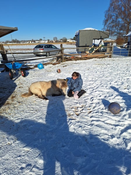 Mini-Shetland-Wallachfohlen „Shay“ in Buckskin sucht sein liebevolles Zuhause ✨ Unser bezauberndes Mini-Shetland-Wallachfohlen Shay steht zum Verkauf – ein echtes kleines Geschenk (Bedeutung seines Namens), das mit Charme, Charakter und Farbe begeistert. Geboren am: 04.05.2025 Geschlecht: Wallach Farbe: Buckskin Abstammung: Vater: American Miniature Horse, Cremello mit blauen Augen (siehe die letzten beiden Bilder) Mutter: Mini-Shetland, Schimmel Shay ist ein typvolles, korrekt gebautes Fohlen mit sehr schöner Ausstrahlung und edler Buckskin-Farbe. Charakter & Umgang: äußerst menschenbezogen, freundlich, unerschrocken, neugierig und offen kennt den Hufschmied und ist dabei brav bereits halfterführig geht entspannt mit seiner Mama spazieren Haltung & Abgabe: Shay wird ausschließlich in eine artgerechte Haltung mit entsprechender Gesellschaft abgegeben. Keine Boxenhaltung – dies ist eine feste Voraussetzung. Shay eignet sich hervorragend als liebevoller Freizeitpartner, Familienpony und später für die Kutsche. Vor allem aber als treuer kleiner Begleiter fürs Herz. Nur in allerbeste Hände abzugeben. Bei ernsthaftem Interesse freuen wir uns über eine persönliche Nachricht.