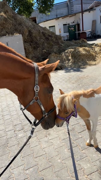 Schweren Herzens muss ich mich von unserem Mini-Shetty „Krümel“ trennen. Mir fehlt einfach die Zeit, ihm die Aufmerksamkeit zu schenken, die er verdient hat. Er ist 3jährig und zeigt sich bisher gar nicht hengstig. Aktuell steht er mit einem 17-jährigen Shetty-Wallach zusammen in einer Paddockbox. Wir suchen für ihn ein 5✨-Zuhause am liebsten mit Paddock und Koppel und neuen Kumpels. Er ist geimpft und im Dezember entwurmt worden. Der Schmied war zum Ausschneiden Ende Januar da. Er ist lieb, hat immer Hunger und ist dankbar für jede Kuscheleinheit, die er bekommt. Kinder können ihn putzen und führen - er macht alles super lieb mit. Nur wenn die Kinder ihm gemeinsam Rennen, kann es auch mal sein, dass ein Freudensprung angesagt ist.