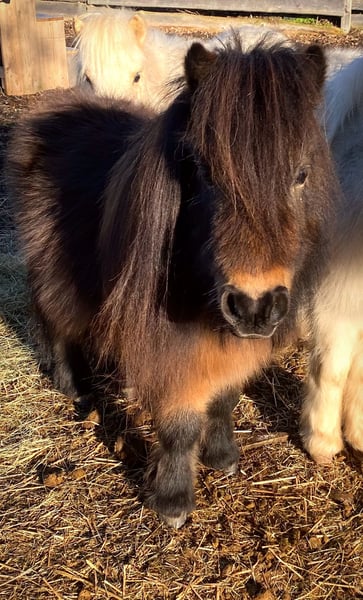 A beautiful home-bred stallion from our family breeding. Can be haltered, can be handled by children, hoof trimming with Flex possible, roadworthy, knows dogs, cats and mice - everyday noises - never ill - no eczema, no laminitis - stands with us in a small mixed herd in an open stable. A stallion with beautiful thick hair - remains small - very interesting for breeding. More pictures and videos on request or at: www.km-minishetlands.de https://www.facebook.com/kmstallions.de/