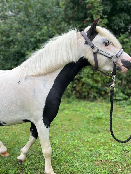Beautiful AMHA stallion looking for a new home! Magic is an exceptionally gentle and child-friendly miniature stallion who lives harmoniously with both large horses and ponies in our herd. He is always attentive, eager to learn, and loves to stay active. With his two striking blue eyes, he’s a real eye-catcher! Magic would make an excellent breeding stallion, driving pony, or a fun partner for groundwork and tricks. A healthy, charming, and reliable little guy who will bring lots of joy.