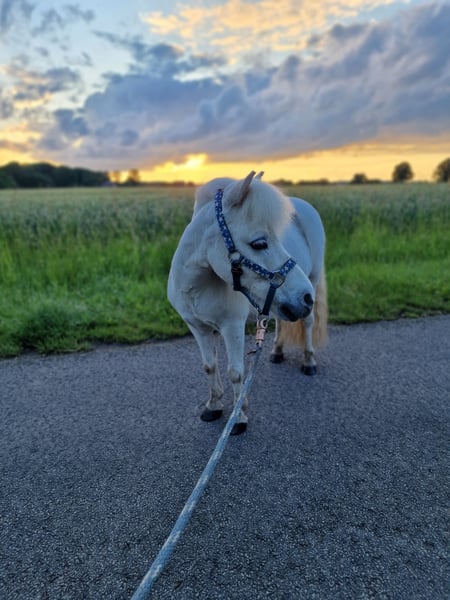 Schweren Herzens habe ich mich dazu entschieden, mein Minishetty in beste Hände abzugeben, da meine Zeit leider nicht mehr für ihn ausreicht. Bobby ist ein 14 jähriger, 85cm großer Wallach. Er ist sehr verträglich und kennt es in gemischten und reinen Wallachherden mit Shettys und mit Großpferden zu stehen. Er steht zurzeit im Offenstall, hat sich aber auch in der Box mit Paddockgang wohl gefühlt. Bobby ist gesund und hatte noch nie Hufrehe. Allerdings sollte er nicht zu viel Gras bekommen, da er sehr leichtfuttrig ist. Bei einer schlechteren Heuqualität hat er in der Vergangenheit Husten gezeigt. Momentan bekommt er ohne Schwierigkeiten Heu und verträgt auch trockene Heulage gut. Bobby ist sehr gut ausgebildet und arbeitet gerne an der Doppellonge oder „normalen“ Longe. Er kann außerdem viele Zirkustricks wie hinlegen, steigen, spanischen Schritt, seitwärts in allen Gangarten, etc. Er hat auch viel Spaß an der Freiarbeit. Bobby ist eingefahren. Er hatte vor ein paar Jahren einen kleinen Unfall und ist seitdem nicht mehr vor der Kutsche gelaufen. Diesen Winter hat er einen Schlitten gezogen und hatte damit keine Probleme. Er ist nicht geritten, es haben bisher nur leichte Kinder auf ihm gesessen. Er ist Schmiede- und verladefromm. Videos von ihm sind auf dem TikTok Account seiner Pflegebeteiligung zu sehen (lolo.crazyhorse). Ich wünsche mir für ihn ein artgerechtes 5 Sterne Zuhause. Zubehör wie Hufschuhe, Decken, Halfter, Kappzaum, etc. kann gerne gegen Aufpreis mitgegeben werden. Besichtigungen sind kurzfristig möglich. Bei weiteren Fragen meldet euch gerne