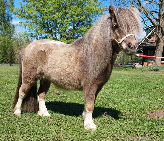 Wir müssen uns aus persönlichen Gründen von unserer Mini Shetty Herde trennen. Es stehen bildschöne / tragende oder nicht tragende Mini Shettys. zum Verkauf. Sie haben alle einen netten Charakter, sind E-Zaun sicher und sind Kinder gewöhnt. Geritten wurden sie bei uns nicht. Alle Ponys haben ein TOP Pedigree und sind alle mit Stammbaum / ggf. Zuchtbucheintrag. 1. Heidi Palomino Stute, geb. 2014 tragend / 1900,00 2. Gonnie Palomino Stute, geb. 2013 1500,00 3. Chanel braune Stute, geb. 2009 1500,00 4. Nadiya Fuchsstute, geb. 2019 1500,00 5. Lidwien Palomino-Fabiano, geb. 2017 tragend / 2500,00 6. Ebony Rappschecke, geb. 2011 tragend / 2500,00 7. Fantasie Rappschecke, geb. 2012 1500,00 8. Impression Fuchs, geb. 2015 1500,00 9. Nonneke Mushroom, geb. 2019 4500,00 9. Confetti Splashed White Fuchs, geb 2018 (rein englisch gezogen) tragend / 4500,00 10. Katylina Mushroom - Tabiono, geb. 2024 11. Lilly Schimmel, geb. 2010 1500,00 Abstammungen von den einzelnen kann gerne nach Anfrage gesendet werden.