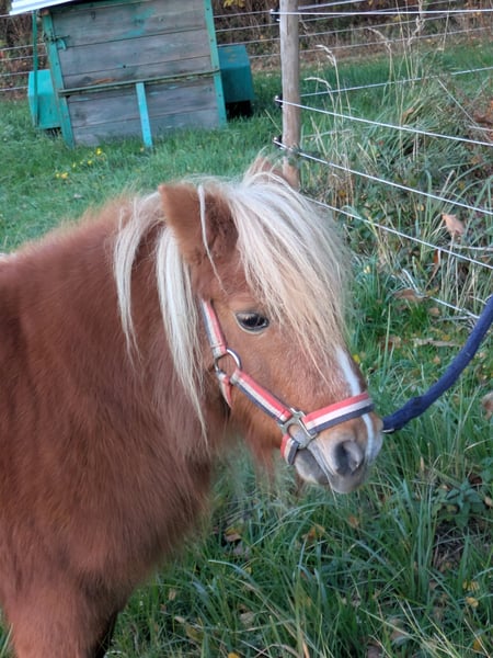 Mini-Shetty-Stute, 14 Jahre alt, Fuchs, abzugeben. Die Stute hat 2020 die Verbandsprämie erhalten. Vollständige Papiere. Das Pony ist sehr kinderlieb, immer ruhig und lässt sich problemlos auch an belebten Straßen führen. Reiten und Führen durch kleine Kinder (bei uns zwischen drei und sechs Jahren) ebenfalls problemlos möglich Nicht schreckhaft! Ehrlich! Schmiede- und Verladefromm! Nähere Informationen gerne unter 01639859069. Schauen Sie auch unsere anderen Anzeige: Mini-Shetty-Stute Fuchsschecke, 7 Jahre alt.
