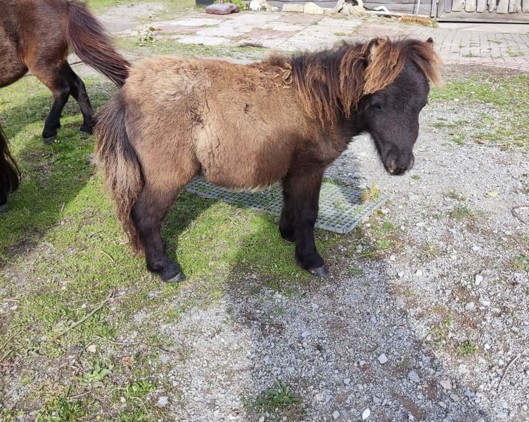Dit is ons merrieveulen Weinberg's Lillyfee. Ze is geboren op 4 april 2025. Ze krijgt papieren van het ZfdP. Ook Lillyfee kon de fokkeuringsrechter van zich overtuigen en kreeg de veulenpremie. Vader is onze hengst Turmalin vom Buchberg Isabell Buckskin, met een schofthoogte van 80 cm. Hij is voorlopig op ons verzoek in hengstenboek 2 ingeschreven. Volgend jaar zullen we hem voorstellen voor de keuring. Moeder is onze Laura, 78 cm en zij is bruin. Lillyfee lijkt een Smoky Black te zijn. Dit kan de nieuwe eigenaar laten testen. Ook groeit zij op in een kudde. Lillyfee mag per direct haar koffertje pakken. Lillyfee kan graag bezocht worden voor een persoonlijke kennismaking. Bij interesse kunt u gerust contact opnemen voor meer informatie.