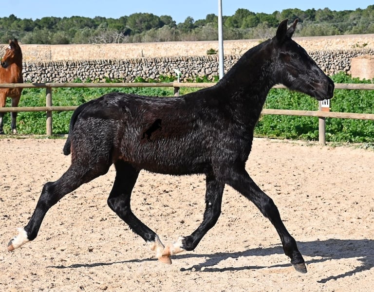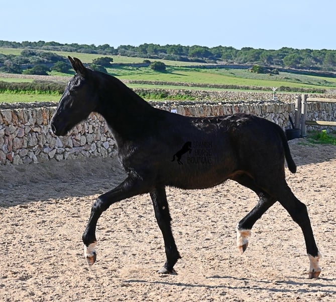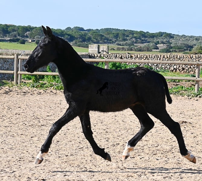 Dieser im Frühjahr 2025 geborene, reinrassige Menorquinhengst, hat eine ganz spezielle Optik. Mit drei weißen Söckchen und einem kleinen Stern, sticht er sofort aus der Herde heraus und seine Zeichnung ist heutzutage eine Seltenheit. Er entstammt sehr alter Urlinien des Menorquin, die sich immer mehr verlieren und es ist schön, dass manche Züchter diese versuchen zu erhalten. Allerdings waren früher noch mehr Exemplare mit weißen Abzeichen in der Rasse vertreten und die sind sichtlich bei ihm durchgekommen ;) So wird er anhand der heutigen Körungsauflagen mit so viel Weiß später nicht als Deckhengst zugelassen, jedoch ein wundervolles Reit- oder Fahrpferd! Er hat schöne Bewegungen und ist sehr flexibel und flink, was ihn bestimmt später auch für die Working Equitation interessant machen wird. Wie es sich für einen Youngster gehört, besteht sein Tagesablauf aus Spielen in der Herde, wachsen und gedeihen ;) Auf vielen Hektar Land, steht er 24/7 bei jedem Wetter draussen und ist daher ein robuster Kerl mit klaren Beinen, klarem Kopf und widerstandsfähigem Körper. Er ist sehr neugierig und hat beim Absetzen die Box kennengelernt und ein solides FohlenABC, das auch jederzeit abrufbar ist. Sein zu erwartendes Endmaß, liegt um die 160cm. Für all jene, die ihn erst später holen möchten, besteht die Möglichkeit auf einen Aufzuchtsplatz vor Ort. Videos und Abstammung gerne auf Anfrage. Sein Standort ist Menorca. Gerne organisiere ich vor Ort eine Fohlen-AKU,Transport oder auch ihre Reise, solltest du persönlich zum Anschauen kommen. Details dazu gerne auf meiner Seite oder im Gespräch. Saludos aus Spanien