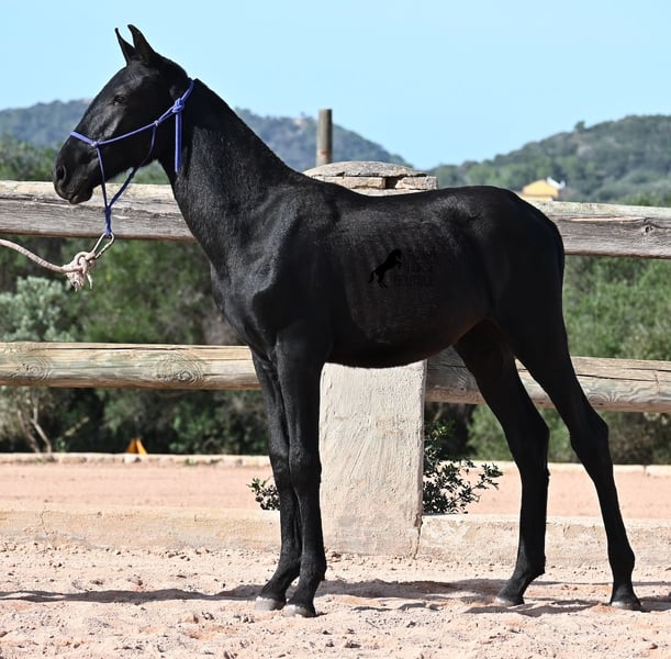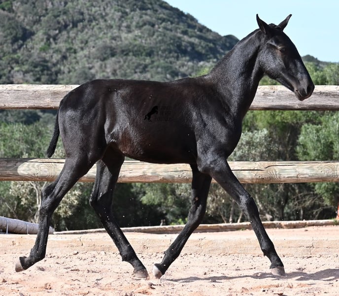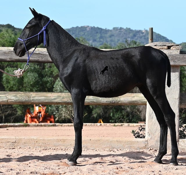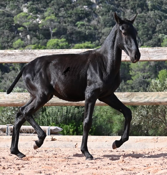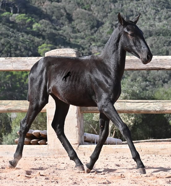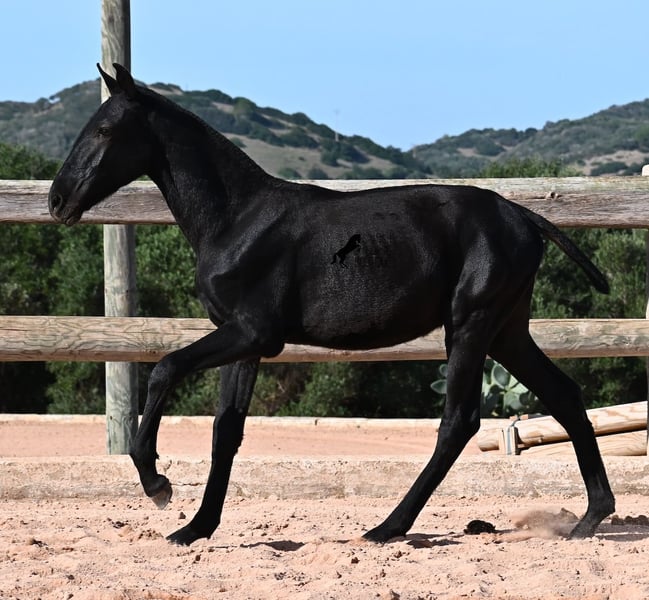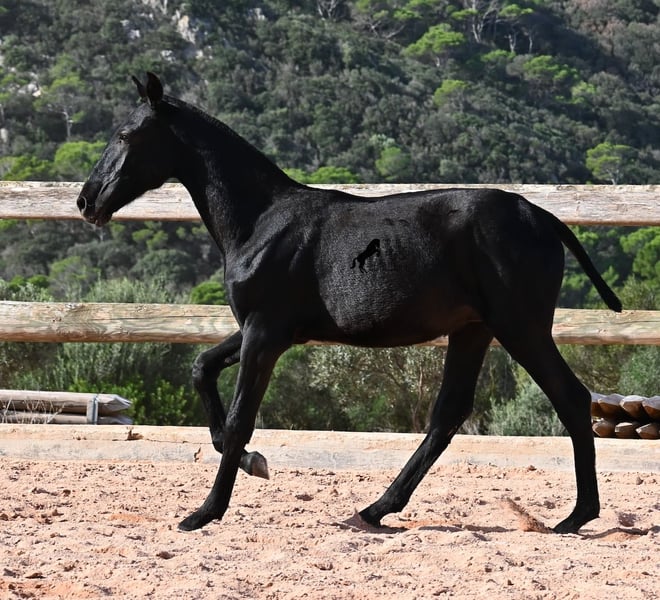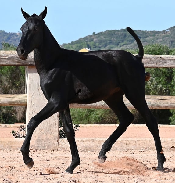This 02/2025 foal, a purebred Menorquín stallion, is truly a treasure. An exceptionally friendly, calm, and remarkably well-built representative of his breed for his tender age. As is typical for his breed, he shows no fear, which made the free-range photos somewhat challenging, but he did demonstrate how elastic and flexible he already is—something not to be taken for granted in foals. On his paternal side, he descends from original lines known for their endurance. His maternal lineage includes a grandson of one of only three elite stallions of the breed, recognized for outstanding achievements in dressage and local Doma Menorquina. This genetic background makes him potentially suitable for many disciplines later on—whether as a dressage horse, working equitation, eventing, or even as a driving horse. He spends his daily life in a horse kindergarten, kept in absolutely robust conditions on rocky terrain and in a harsh climate. Besides playing with his horse friends, he regularly participates in basic foal training and receives very loving care. Videos and pedigree details are available upon request. He is located in Menorca. I am happy to arrange a foal health check, transportation, or even your journey if you wish to come and see him in person. Please contact me for more details, either on my website or in conversation. Greetings from Spain