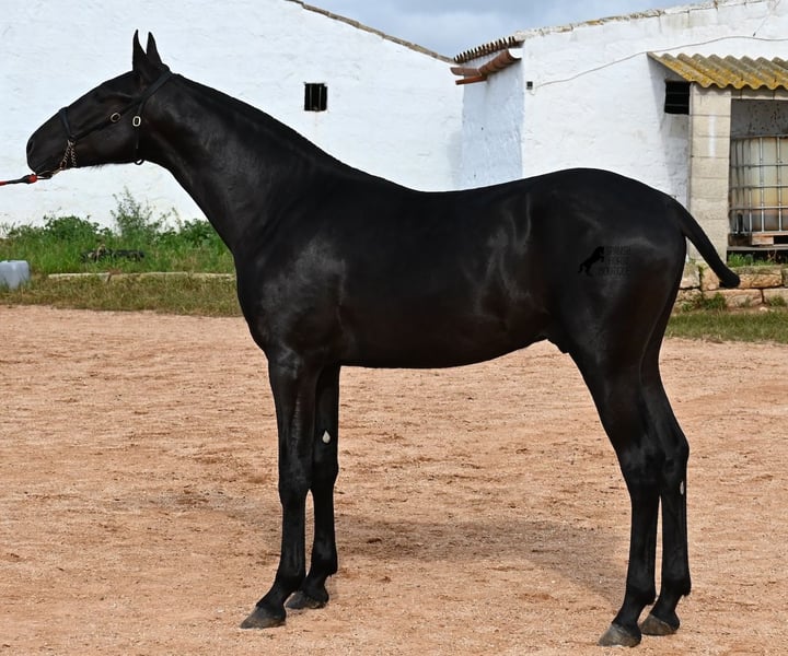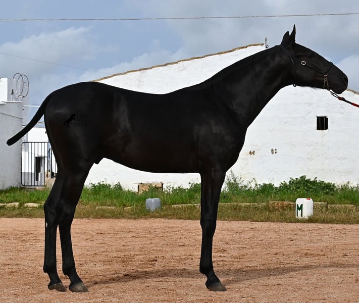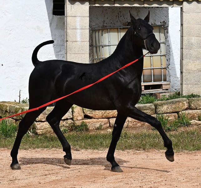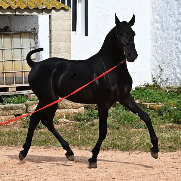 Ce poulain Menorquin, né en 2024, est déjà un véritable coup de cœur ! D'une élégance incroyable pour son âge, il attire immédiatement l'attention. Son mouvement est également remarquable, car il possède non seulement une belle phase de suspension au trot et une tendance à l'élévation au galop, mais il est aussi très souple et flexible. Cela le rendra intéressant plus tard pour l'équitation de travail, bien qu'il s'épanouisse certainement dans de nombreux domaines, y compris en tant que cheval de loisir pur :) Il a déjà été présenté lors d'une exposition de chevaux et connaît donc le travail en longe avec un licol de présentation (exigence de l'exposition), le chargement, et il s'habitue à de nouveaux environnements, ce qui lui a permis d'acquérir une base solide dès son jeune âge. Son pedigree est également impressionnant, car l'un de ses grands-pères est l'un des trois étalons ÉLITE de la race, et son autre grand-père est un étalon RECOMENADO qui connaît de grands succès en dressage. Il vit en troupeau dans un système de détention robuste, mais il connaît aussi la vie en box. Sa taille finale attendue est d'environ 163 cm. Si vous souhaitez l'acquérir plus tard, un emplacement pour son élevage peut être organisé. Des vidéos et des informations sur son pedigree sont disponibles sur demande. Son emplacement est à Minorque. Je peux également organiser sur place une visite de poulain, le transport ou votre voyage si vous souhaitez venir le voir personnellement. Pour plus de détails, n'hésitez pas à consulter ma page ou à en discuter. Salutations d'Espagne.