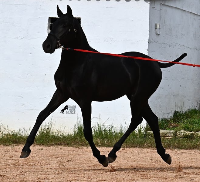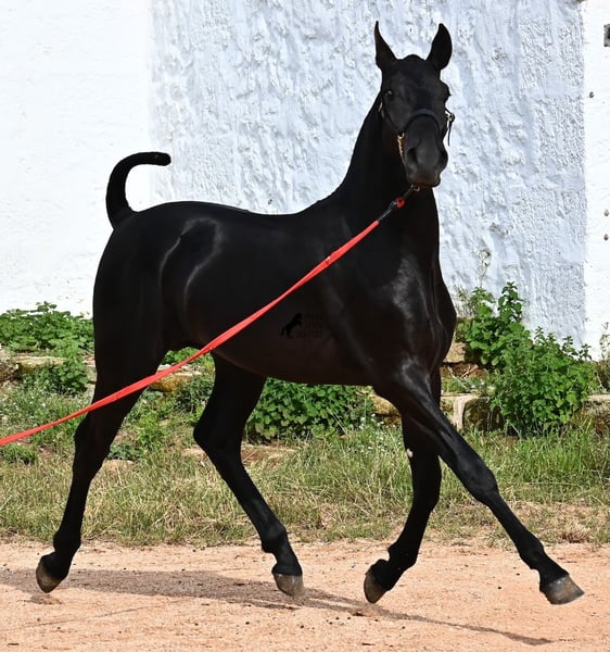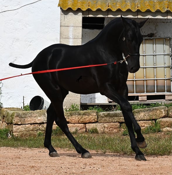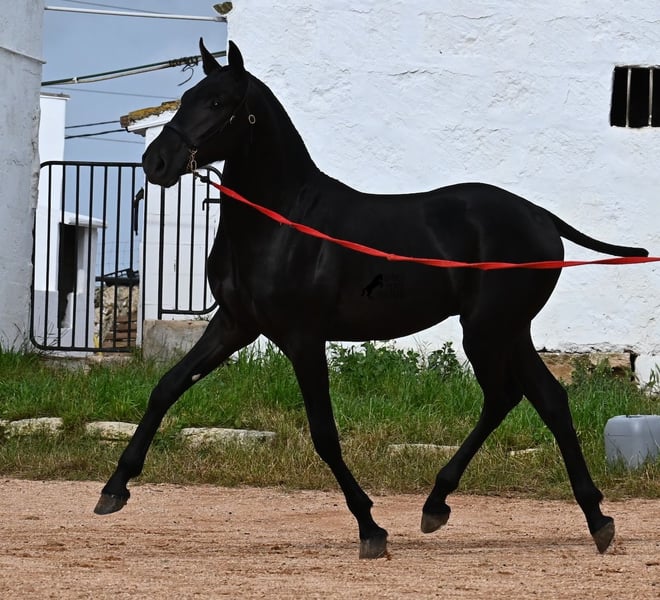 This 2024-born, purebred Menorquin colt is already a real eye-catcher! Unbelievably elegant for his age and his charisma is immediately captivating. His movement is also remarkable, as he not only has a beautiful suspension phase in the trot and an upward tendency in the canter, but he is also very supple and flexible. This makes him interesting for Working Equitation later on, although he will surely be happy in many areas - even as a pure leisure horse :) He has already been presented at a breeding show and is familiar with lunging using a presentation halter (a requirement of the breeding show), loading, and being in new places, giving him a very extensive foundation from the foal ABC. His pedigree is also impressive, as one grandfather is one of the only 3 ELITE stallions of the breed, and his other grandfather is a RECOMENADO stallion who has celebrated great successes in dressage. He lives in a robust environment within a stallion herd but is also accustomed to a box. His expected final height is around 163 cm. If you wish to pick him up later, a rearing place can be organized for him. Videos and pedigree available upon request. His location is Menorca. I would be happy to organize a foal inspection, transport, or your trip should you wish to come and see him in person. Details can be found on my page or in conversation. Greetings from Spain!
