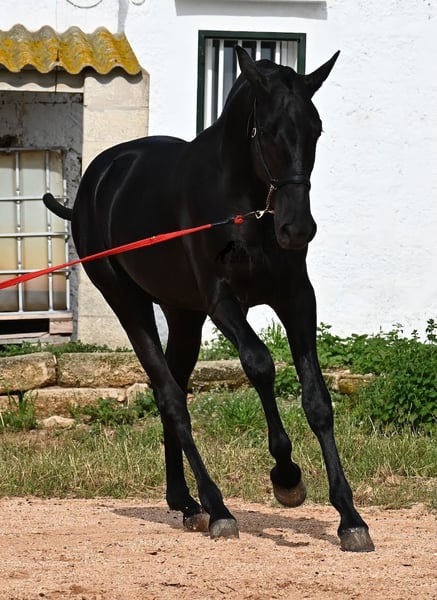 Este potro Menorquín de pura raza, nacido en 2024, ¡ya es una verdadera belleza! Increíblemente elegante para su edad y su presencia, te atrapa de inmediato. Su movimiento también es notable, ya que no solo tiene una bonita fase de suspensión en el trote y una tendencia ascendente en el galope, sino que también es muy ágil y flexible. Esto lo hace interesante más adelante para la Equitación de Trabajo, aunque seguramente será feliz en muchas áreas, incluso como caballo de ocio puro :) Ya ha sido presentado en la muestra de cría y, por lo tanto, conoce el trabajo en la cuerda con cabezada de presentación (requisito de la muestra de cría), la carga y la adaptación a nuevos lugares, lo que le proporciona una base muy completa del ABC de potros. También su pedigree es impresionante, ya que uno de sus abuelos es uno de los 3 sementales ÉLITE de la raza y su otro abuelo es un semental RECOMENADO, que ha logrado grandes éxitos en la doma. Vive en un sistema de cría extensiva en un grupo de sementales, pero también conoce el establo. Se espera que su altura final esté alrededor de los 163 cm. Si deseas recogerlo más tarde, se puede organizar un lugar de cría para él. Videos y pedigree disponibles a solicitud. Su ubicación es Menorca. Con gusto organizaré una evaluación de potros, transporte o su viaje, en caso de que desee venir personalmente a verlo. Detalles disponibles en mi página o en conversación. Saludos desde España.