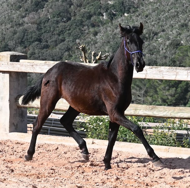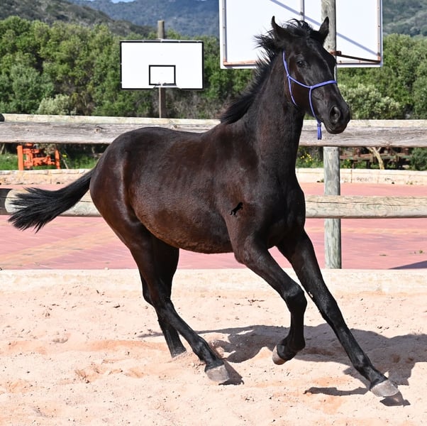 Dieser 2024 geborene, reinrassige Menorquinhengst, ist ein eleganter Youngster mit viel Potenzial! Lebensfroh, wie man es sich von einem Jungpferd wünscht, vertrauensvoll dem Menschen gegenüber und ein Rohdiamant, der später in vielen Sparten glänzen kann. Denn er hat sehr korrekte Bewegungen, ist sehr wendig, stark in der Hinterhand und harmonisch im Gebäude. Somit wird er für die Working Equitation, Dressur, Vielseitigkeit und natürlich als Freizeitpferd, bestimmt ein Kandidat, der Freude machen wird! Sein Papa ist ein herausragender Hengst, denn 3 (!) seiner Nachfahren wurden RASSECHAMPION! Die Mama bringt Championblut mit in die Abstammung und in der Kombination, wird er bestimmt später auch für Züchter interessant. Er genießt das Fohlenleben in der Herde, steht 24h in Robusthaltung auf harten Böden und marschiert spielend viele Kilometer mit seinen Kumpels. Somit ist er robust, hat gute Hufqualität und klare Beine. Sein zu erwartendes Endmaß liegt um die 162cm und er wird noch barocker im Exterieur. Er ist halfterführig und jederzeit bereit, die große Reise anzutreten-hoffentlich zu dir ;) Aktuell steht er auf Menorca! Videos und Abstammung gerne auf Anfrage. Gerne organisiere ich vor Ort eine AKU, Transport oder auch ihre Reise, sollten Sie persönlich zum Anschauen kommen. Details dazu gerne auf meiner Seite oder im Gespräch. Saludos aus Spanien