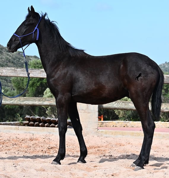 Este semental Menorquín de pura raza, nacido en 2024, es un joven elegante con mucho potencial. ¡Vital y alegre, como se espera de un potro, es confiado con las personas y un diamante en bruto que puede brillar en muchas disciplinas! Tiene movimientos muy correctos, es muy ágil, fuerte en la parte trasera y armónico en su conformación. Por lo tanto, será un candidato que seguramente dará satisfacción en la Equitación de Trabajo, en Doma, en Concurso Completo y, por supuesto, como caballo de ocio. Su padre es un semental excepcional, ya que ¡3 (!) de sus descendientes han sido CAMPEONES DE RAZA! La madre aporta sangre de campeón a su linaje y, en combinación, seguramente será interesante para los criadores en el futuro. Disfruta de la vida de potro en manada, vive en un sistema robusto 24 horas en suelos duros y camina alegremente muchos kilómetros con sus amigos. Por lo tanto, es robusto, tiene buena calidad de casco y piernas claras. Se espera que su altura final sea alrededor de 162 cm y se volverá más baroque en su exterior. Está acostumbrado a llevar cabestro y está siempre listo para emprender el gran viaje, ¡esperemos que hacia ti! Actualmente se encuentra en Menorca. Videos y ascendencia disponibles a pedido. Con gusto organizo una revisión veterinaria, transporte o también su viaje, si desea venir a verlo personalmente. Más detalles en mi página o en conversación. Saludos desde España.