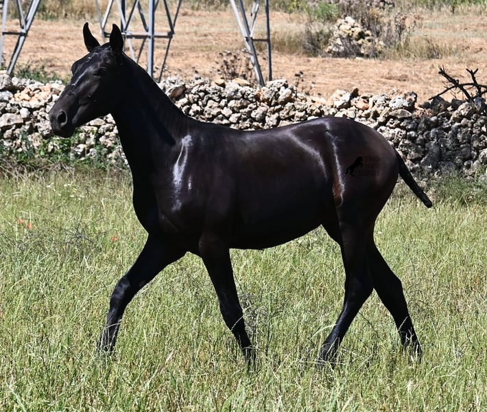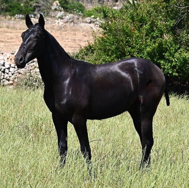 Ce pur-sang Menorquin, né au printemps 2024, est un représentant de la race très affectueux. Son regard doux et son air câlin en témoignent déjà :) Son père a produit plusieurs champions de race, il a donc une lignée exquise et nous trouvons également un champion de race du côté maternel dans ses ancêtres. Il provient de vieilles lignées de Menorquin, connues pour leurs chevaux endurants et polyvalents. Cela se ressent chez lui, car il a un excellent mouvement, est très souple et agile, possède un bon arrière-train et deviendra encore plus baroque. Dans de grands pâturages, il peut profiter de la vie de jeune cheval avec son ami, ce qui lui permet d'être parfaitement socialisé. Grâce aux nombreuses roches et aux sols durs, il a une excellente qualité de sabot et est déjà sûr de ses pas. En manipulation, il est très bien élevé, il a déjà découvert son box et il est très amical et attaché aux humains. Plus tard, il sera intéressant tant comme cheval de monte que comme cheval de trait, car les Menorquin sont très polyvalents ! Sa taille finale prévue est d'environ 165 cm. Si vous souhaitez le récupérer plus tard, un endroit pour son élevage peut être organisé. Des vidéos et des informations sur sa lignée sont disponibles sur demande. Son emplacement est à Minorque. Je peux également organiser sur place un examen vétérinaire pour les poulains, le transport ou votre voyage, si vous souhaitez venir le voir en personne. Pour plus de détails, n'hésitez pas à consulter ma page ou à en discuter. Salutations d'Espagne.