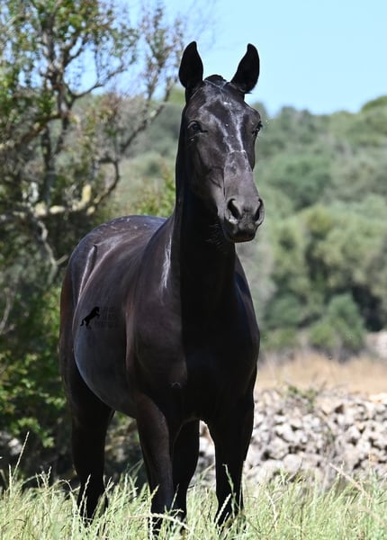 Dieser im Frühjahr 2024 geborene, reinrassige Menorquinhengst, ist ein ganz herzlicher Rassevertreter. Das verrät schon sein sanftes Auge mit diesem knuffigen Blick :) Sein Papa hat mehrere Rassechampions hervorgebracht, also hat er eine exquisite Abstammung und auch mütterlicherseits finden wir einen Rassechampion in den Ahnen. Er entstammt alter Linien des Menorquin, die für ausdauernde und vielseitige Pferde stehen. Das merkt man auch an ihm, denn er hat eine tolle Bewegung, ist sehr geschmeidig und flexibel wendig, eine gute Hinterhand und wird noch schön barock. Auf großen Weiden, darf er mit seinem Freund das Jungpferdeleben genießen, wodurch er bestens sozialisiert ist. Dank der vielen Felsen und harten Böden, hat er eine tolle Hufqualität und ist jetzt schon trittsicher. Im Umgang ist er sehr artig, die Box hat er auch schon kennengelernt und er ist dem Menschen gegenüber sehr freundlich und zugewandt. Später wird er sowohl als Reitpferd, als auch als Fahrpferd interessant werden, denn vielfältig sind die Menorquin sehr! Sein zu erwartendes Endmaß liegt um die 165cm. Solltest du ihn erst später holen wollen, so kann gerne ein Aufzuchtsplatz für ihn organisiert werden. Videos und Abstammung gerne auf Anfrage. Sein Standort ist Menorca. Gerne organisiere ich vor Ort eine Fohlen-AKU,Transport oder auch ihre Reise, sollten Sie persönlich zum Anschauen kommen. Details dazu gerne auf meiner Seite oder im Gespräch. Saludos aus Spanien
