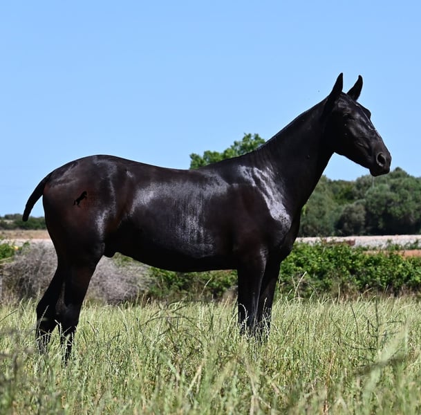 Este semental Menorquín de pura raza, nacido en primavera de 2024, es un representante de la raza muy cariñoso. Su suave mirada ya lo revela con esa expresión tan tierna :) Su padre ha producido varios campeones de raza, por lo que tiene un linaje exquisito y también por parte materna encontramos un campeón de raza en sus ancestros. Proviene de antiguas líneas del Menorquín, que son conocidas por producir caballos resistentes y versátiles. Esto se nota en él, ya que tiene un gran movimiento, es muy ágil y flexible, tiene un buen trasero y se desarrollará con un bonito tipo barroco. En grandes praderas, disfruta de la vida de potro con su amigo, lo que lo ha socializado muy bien. Gracias a las muchas rocas y suelos duros, tiene una excelente calidad de casco y ya es seguro en sus pasos. Es muy educado en el manejo, ya ha conocido el box y es muy amigable y afectuoso con las personas. Más adelante, será interesante tanto como caballo de monta como de tiro, ¡ya que los Menorquines son muy versátiles! Se espera que su altura final sea alrededor de 165 cm. Si deseas recogerlo más tarde, se puede organizar un lugar de crianza para él. Videos y pedigree disponibles a solicitud. Su ubicación es Menorca. Con gusto organizo en el lugar una revisión veterinaria para potros, transporte o también su viaje, en caso de que desee venir a verlo personalmente. Para más detalles, consulte mi página o hablemos. Saludos desde España.
