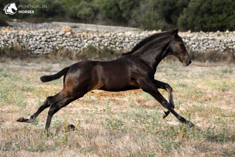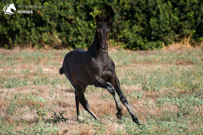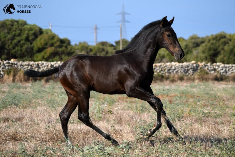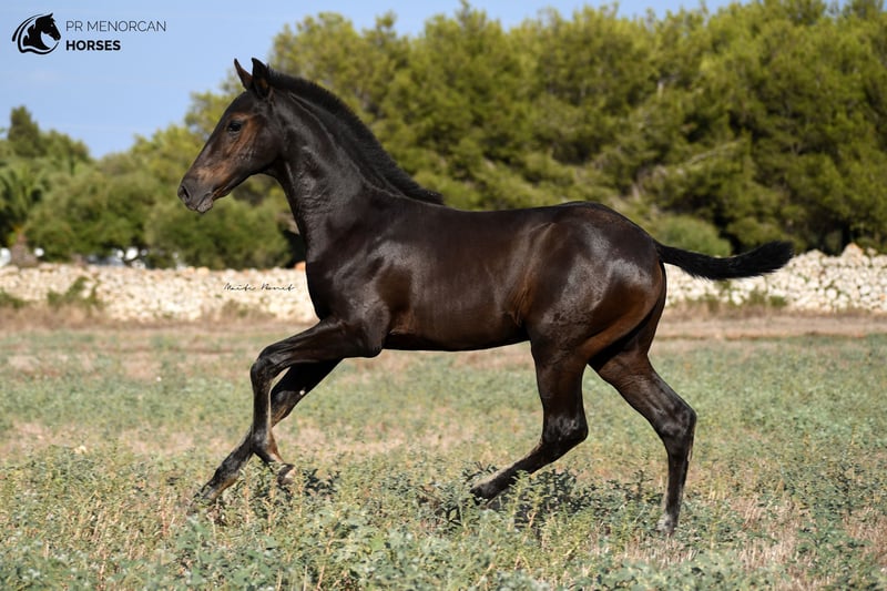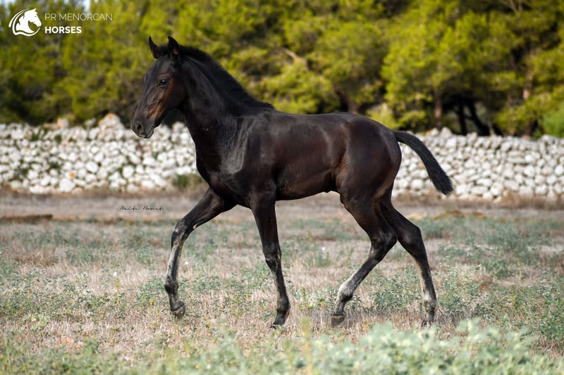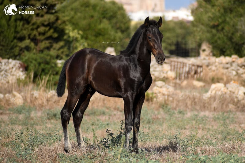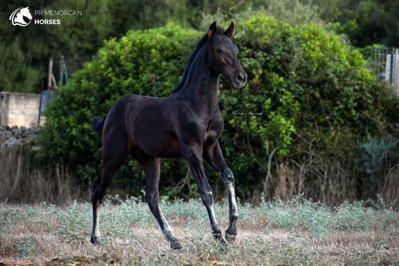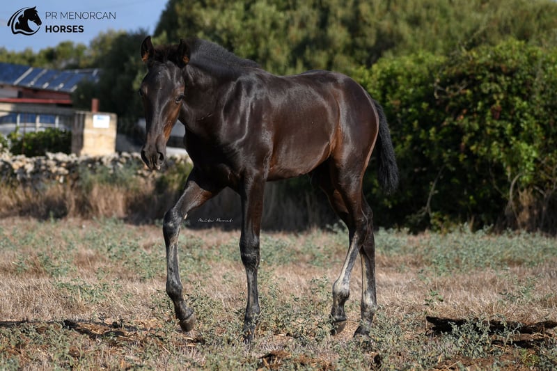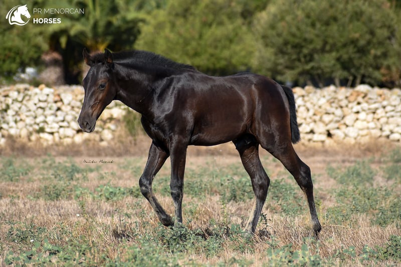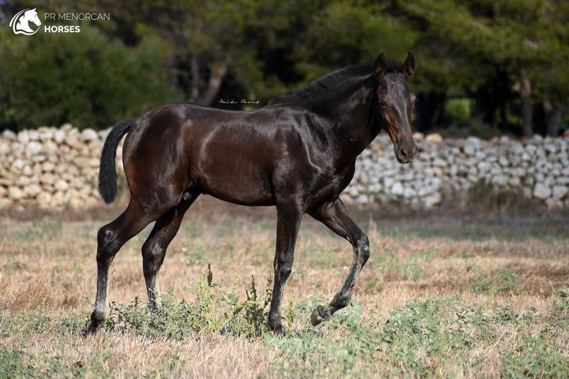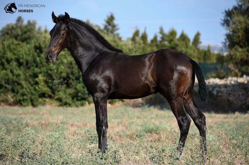 This beautiful and energetic Pura Raza Menorquina colt is looking for a new home. He was born in April 2023 and is completely black. His father is a breed champion stallion with several awards such as the best stallion (for the awards obtained by his offspring) who measures approximately 160cm. On the maternal side, his mother is a mare recommended for her morpho-functional conformation, with prizes for her movements and morphology. She is a big mare, she is about 164cm tall. In addition, her grandmothers were also breed champions. As you can see, he has a very good lineage, so he could be a good option if you are looking for your future stallion. But it will also be a fantastic horse for dressage, working equitation, carriage, shows or simply to go for a walk in the countryside. He is very curious and full of energy. He lives with his mother and another young mare, which is perfect for him to play, run and grow freely in the field, and at the same time learn manners from his mother and the other mare. If you decide to buy it now, he will stay with his mother until he is ready to wean, around October. If you want him to stay for a longer time and even have him trained here in Menorca, we can also organize it. You can come visit him for yourself, or we can do the whole process online (as we do with our US clients). I can organize a pre-purchase exam, quarantine and transport worldwide. Located in Menorca DM for more information and videos ;) Cheers!