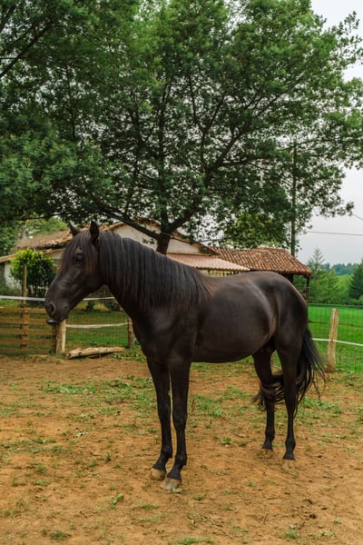 Elegant PRMe stallion, born in 2022, completely black and currently standing around 162 cm, with potential to grow a little more. A young horse with great presence, harmony and an exciting future ahead. He comes from excellent bloodlines, with breed champion stallions in his pedigree, including an ELITE stallion, and a dam who has produced breed champion offspring. Thanks to his pedigree and qualities, he represents a very interesting prospect as a future breeding stallion (subject to approval). He has been raised in the countryside from a young age, living freely with other horses, always handled with respect, patience and good horsemanship, which has helped develop his noble, calm and balanced temperament. Around people he is especially pleasant to work with — quiet, attentive and cooperative, to the point that in daily handling he hardly feels like a stallion at all. He also behaves well with other horses and shows normal, relaxed social behaviour. His training started in autumn 2024, at around 2.5 years of age, working regularly with a professional trainer. During this period a strong focus has been placed on groundwork, where he has learned the basic aids and body control: moving the shoulders, yielding to pressure, responding to signals and building clear communication with the handler. Recently the training has progressed to bringing all the learned elements together, starting to transfer the work under the saddle. He continues to progress calmly and willingly, and he has also accepted the bit very well, introduced gradually as part of his training. So far he has received approximately 70 training sessions, always respecting his pace and focusing on building a solid and positive foundation for the future. He is very attentive and easy to manage in daily life, often the first one waiting when it is feeding time. He currently receives two daily meals of feed with supplements, maintaining excellent condition. A young stallion with an outstanding mindset, a good training foundation and excellent bloodlines, offering potential for sport, further training or breeding. Visits are welcome. We can also organize veterinary examinations, documentation and worldwide transport. DM for more info and videos 🤗 Cheers!