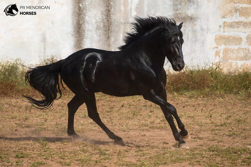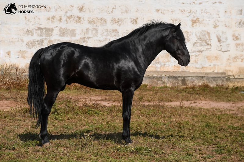 ste elegante semental de Pura Raza Menorquina, nacido en 2021, está buscando su nuevo hogar. De capa negra con un encantador calcetín blanco en la pata trasera izquierda, mide 162 cm y tiene una genealogía destacada: hijo de un reconocido semental premiado por morfología y funcionalidad, y por línea materna descendiente de la prestigiosa línea Dubin. De carácter tranquilo y equilibrado, conoce todo el manejo básico. Está domado en doma clásica y doma menorquina, con inicios en paso español y el tradicional bot menorquín. Además, también sabe ir enganchado. Es seguro para montar en exterior y se comporta correctamente con otros caballos. Desparasitado, vacunado y acostumbrado al herrero. Ubicado en Menorca Organizamos examen veterinario, documentación y transporte a cualquier parte del mundo. Escríbenos por privado para más información y vídeos.