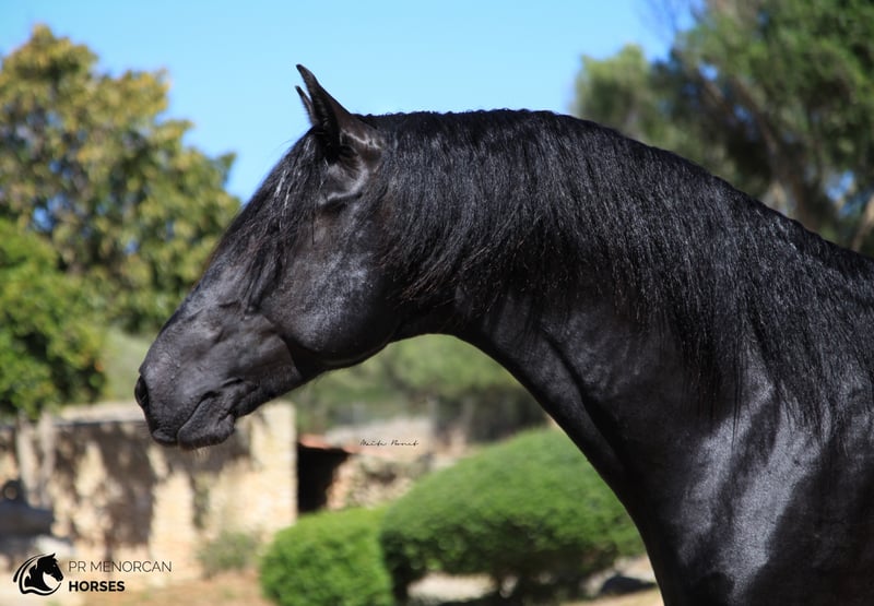 Stunning 6 y.o. Pura Raza Menorquina awarded stallion. He is completely black, measures approximately 160cm, although it is possible that he grows a little more. He has been raised on a stud farm of breed champions. He is the son of awarded horses and is approved as a breeding stallion, so he would be a good choice for someone looking for a good stud. He has a medium dressage level including lateral work, Spanish walk and he is learning piaffe, flying changes and the traditional "bot" He can be ridden both in dressage and Menorcan dressage. He has participated in the Menorcan Breed Horse Championship, obtaining several awards. He also has dressage experience where he also won some awards. He lives stabled with other stallions and he is dewormed and vaccinated regularly. If you think he is the right horse for you, do not hesitate to contact us. If you can come to Menorca, you can visit it yourself. If that is not possible, we can do the entire process online. I can arrange a PPE, quarantine and transport worldwide. Located in Minorca DM for more information and videos ;) Greetings!