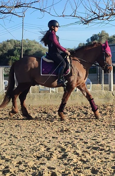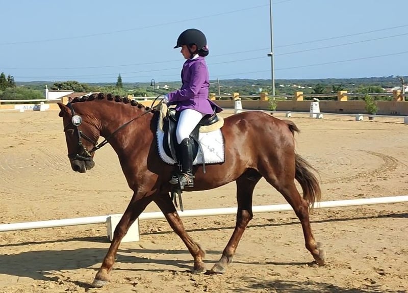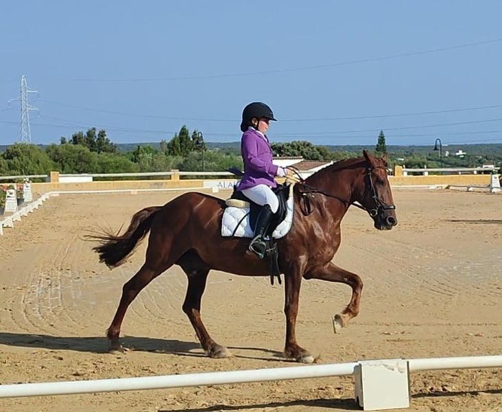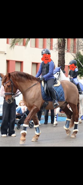 Ideal school horse for children, where they can grow and learn with complete confidence. My daughter has been riding him since she was 7 years old, and he has been the best teacher to help her develop trust and continue loving the world of horses. He is currently competing in territorial level 1 dressage competitions with very good results. Suitable for level 0 AP and level 1 Alevines. Excellent for trail rides and city outings. He is unshakable—nothing frightens him, whether wind, puddles, or anything else. I can send videos. A horse of full trust for both adults and children. 16 years old. Cob size. Minorcan breed, bay. More details available privately.