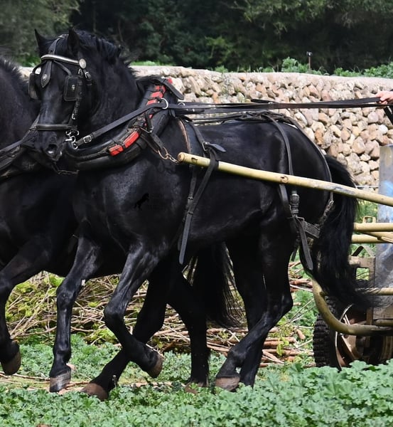 Dieser 2017 geborene, reinrassige Menorquinwallach, ist mit seinen 159cm Stockmaß, schön kompakt. Dieses kompakte Exterieur, lässt er besonders vor der Kutsche zur Geltung kommen, wo er sowohl einspännig, als auch mehrspännig gefahren wird! Er ist pechschwarz, ohne ein weißes Abzeichen und das macht ihn so richtig elegant als Fahrpferd. Sein Ohrenspiel zeigt, wie aufmerksam er ist und nicht nur auf die Zügelführung, sondern auch auf die Stimme des Fahrers, reagiert. Unterm Sattel ist er hauptsächlich im Gelände geritten, hat also nicht viel Ausbildung im Viereck was Lektionen betrifft, ist dafür aber ein ideales Freizeitpferd für alle, die gerne rausgehen oder selber noch ausbilden möchten, denn er wäre mit seinem Körperbau auch für die Working Equitation interessant. Im Umgang lässt er manchmal den Schelm durchblicken, ist aber absolut liebevoll dabei! Er geht problemlos barhuf, auch auf den felsigen Ausreitwegen Menorcas. Preis entsprechend der heutigen Kategorie des Menorquin, der vom Aussterben bedroht ist und eine Seltenheit! Sein Standort ist Menorca. Videos und Abstammung gerne auf Anfrage. Gerne organisiere ich vor Ort eine AKU, Beritt, Transport oder auch ihre Reise, sollten Sie persönlich zum Anschauen kommen. Details dazu gerne auf meiner Seite oder im Gespräch. Saludos aus Spanien