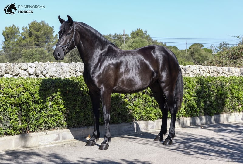 his 2015 jet-black PRMe mare stands at 159 cm and is approved for breeding. What makes her even more special is that she’s the granddaughter of one of only three ELITE stallions officially recognized in the Menorcan breed, an exceptional lineage that’s hard to find. She has foaled three times and is now slowly coming back into work after raising her young. At first, she may come across as moody or reserved – but that’s just her nature. Once she trusts you, she becomes a loyal companion who genuinely enjoys your presence. Easy to catch, lead, tie, bathe, and great with the farrier. Loads well into a horsebox or trailer. Used to the horse walker. Can live out or be stabled – though she loves her stable! Very social and gets along with mares or geldings. She was backed and ridden away before having her foals and is now getting back into work. She’s super easy to handle – a perfect partner for relaxing countryside rides. Located in Kent, UK – International transport and purchase support available. Message us for more info or to arrange a visit. Cheers! --- ¿Quieres también una versión tipo anuncio corto o frase para un story?