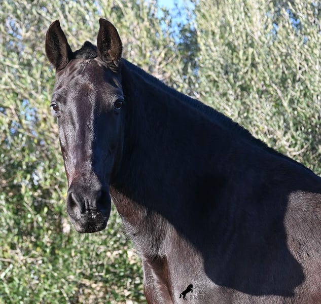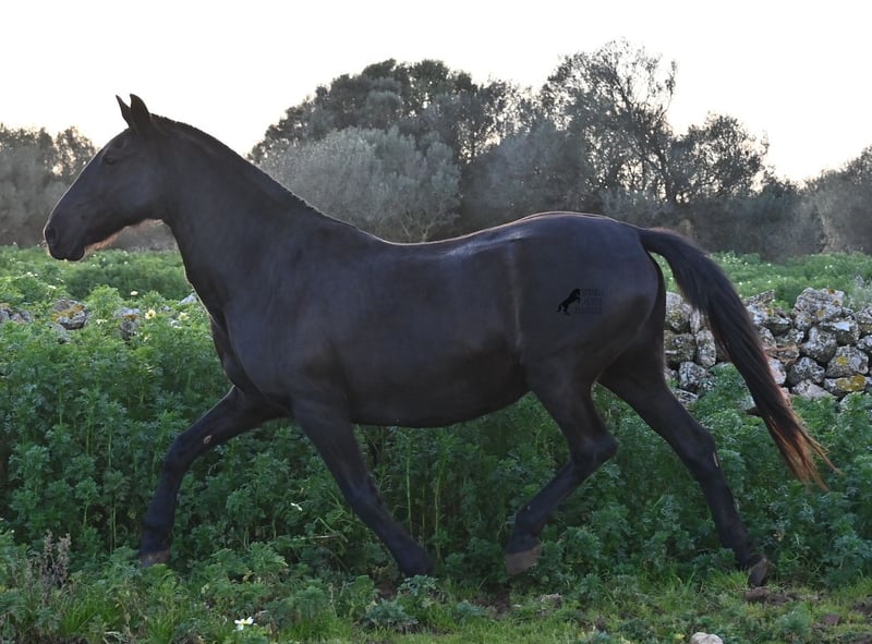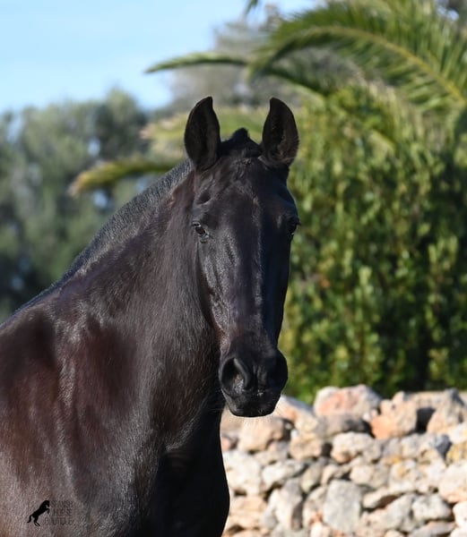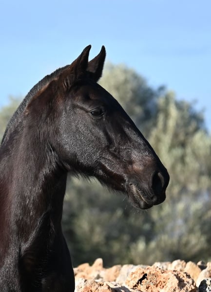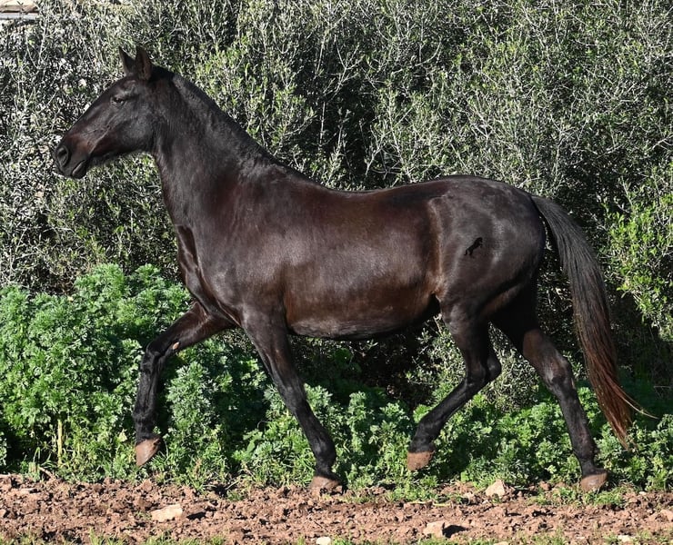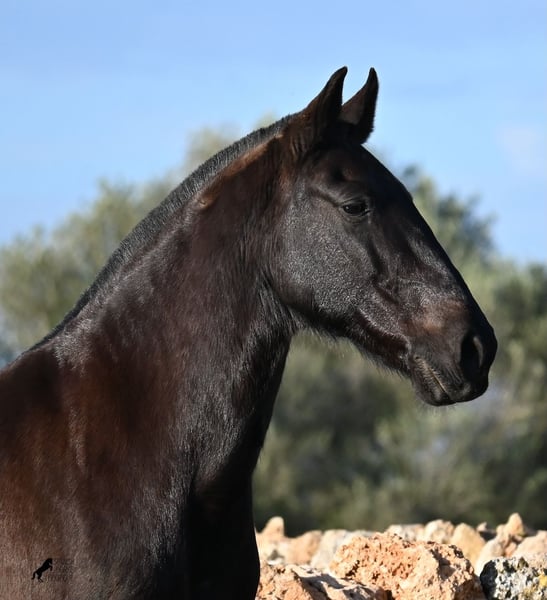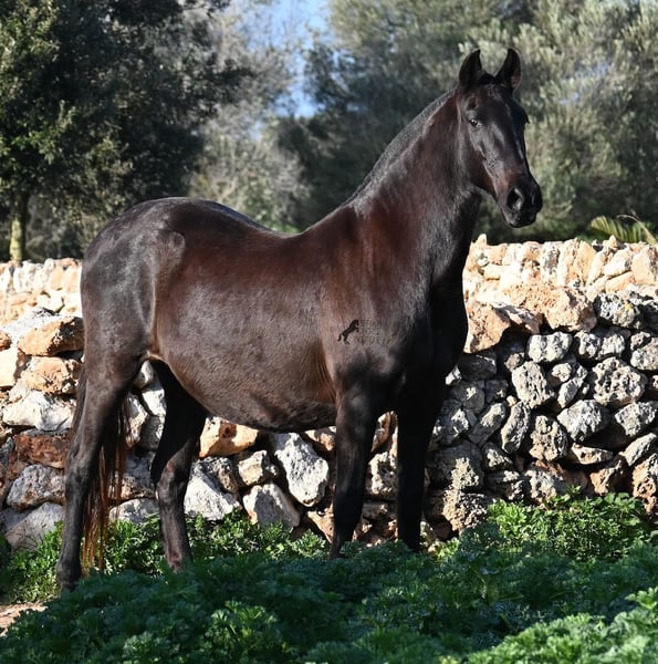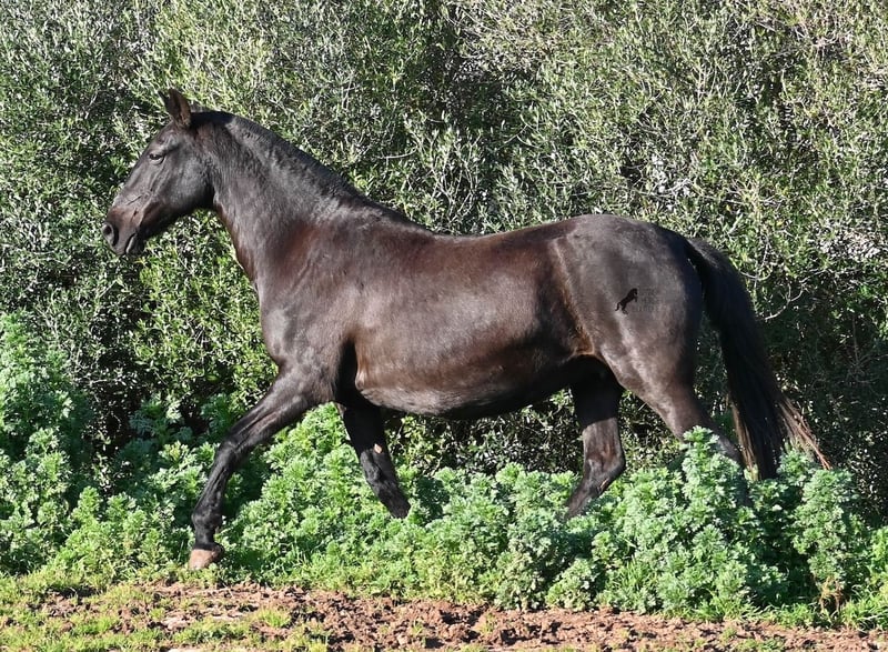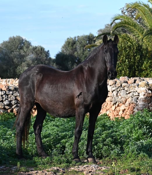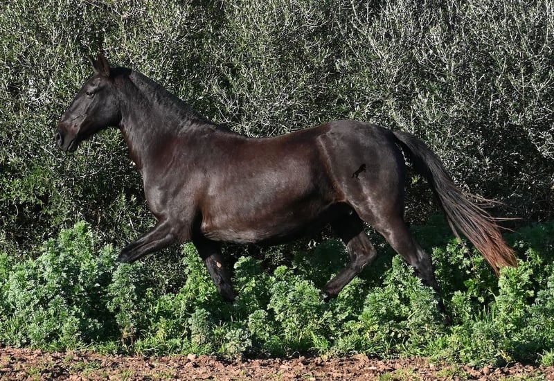 Wegen dringender Bestandsverkleinerung verkaufe ich meine Rassechampiontochter VILLETA, die morfologisch den rasseidealen Kopf und Hals vererbt bekommen hat und auch die morfologischen Feinheiten an ihr Nachtzucht weitergibt. Villeta ist 2007 geboren und war ihr Leben lang reine Zuchtstute und ist daher NICHT geritten. Sie ist halfterführig und geht alleine auf den Anhänger, ansonsten ist sie roh. Sie war verkauft und sollte Ende März auf den Transport gehen. Die Käufer sind abgesprungen und aufrgund der furchtbaren Wetterverhältnisse von November bis März, war es mir nicht möglich meine Felder zu bestellen. Bevor die Futterknappheit kommt, möchte ich Villeta ein Zuhause finden, denn da sie ja eigentlich verkauft war, war alles den Pferden zu Gute korrekt gemanaged. Villeta ist knapp 160c, groß, komplett schwarz ohne Abzeichen und ist eine Tochter des Rassechampionhengstes MALBORO, eine Linie die sich leider im Menorquin verliert und es wäre schön, diese zu erhalten. Ihre Mutter ist ANCORA, eine Urlinie des Menorquin. Diese alten Rassen spiegeln sich nicht nur in ihrer Ausdauer wider, sondern auch in ihrer hohen Intelligenz und Charisma. Denn Villeta schaut sich alles zwei Mal an, bevor sie ja sagt und nur Vertraute dürfen alles mit ihr machen- dabei verlangt sie auch immer absolute Ruhe und Respekt im Umgang. Sie hat sehr gute Bewegungen und auch diese vererbt sie an ihre Nachzucht. Aufgrund der Dringlichkeit ist ihr Preis bei 2.200€ inkl Spanischer Mwst angesetzt- Platz vor Preis! Sie ist geimpft, alle 3 Monate entwurmt, bekommt Pavo und Mineralien die ich extra aus Deutschland bestelle. Also rundum versorgt und jederzeit abreisebereit. Videos gerne auf Anfrage. Ihr Standort ist Menorca auf meinem Hof bei Ciutadella. Gerne organisiere ich den Transport!