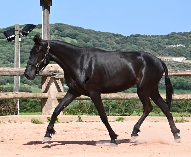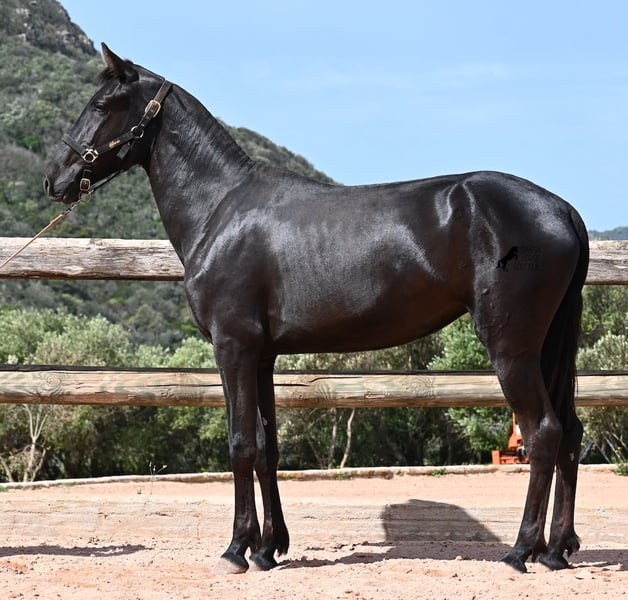 Diese 2024 geborene, reinrassige Menorquinstute, ist in ihrem zarten Alter schon schön harmonisch gebaut. Durch ihre Adern fließt edles Blut, denn ihr Papa war Rassechampion und ist über 170cm groß. Aktuell misst sie schon fast 157cm und da Menorquin absolute Spätentwickler sind, wird auch sie noch einige Zentimeter wachsen. Ihr Gebäude und ihre Bewegungen sind ideal für die Working Equitation, Western und barockes Reiten, wobei ihr natürlich noch alle Sparten später offenstehen. Sie hat einen starken Rücken und was schön zu sehen ist, sie geht alleine vorwärts/abwärts, was in der späteren Arbeit sehr zuvorkommend ist. Ansonsten genießt sie das Fohlenleben in der Herde, steht 24h in Robusthaltung auf harten Böden und marschiert spielend viele Kilometer mit ihren Kumpels über Felsen und Hügel. Somit ist sie robust, hat gute Hufqualität und klare Beine. Es sind keine weißen Abzeichen an ihr zu finden, doch sie hat seit Geburt an eine bräunliche Stelle auf der rechten Halsseite, die auch beim Fellwechsel nicht verschwindet. So ist sie wirklich einzigartig und sticht aus der Herde heraus. Im Umgang ist sie ganz sanft und zart, in der Herde ist sie mittleren Ranges. Eine tolle Nachwuchsstute, im idealen Alter, um langsam spielerisch mit Bodenarbeit anzufangen und eine Freundschaft fürs Leben aufzubauen. Videos und Abstammung gerne auf Anfrage. Ihr Standort ist Menorca. Gerne organisiere ich vor Ort eine AKU, Transport oder auch ihre Reise, sollten Sie persönlich zum Anschauen kommen. Details dazu gerne auf meiner Seite oder im Gespräch.