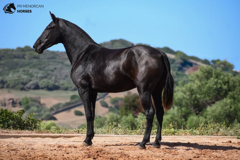 legance, Movement, and Champion Bloodlines! This stunning Pura Raza Menorquina filly, born in March 2022, could be yours! She has a solid black coat and currently stands at 158 cm, expected to grow to about 160 cm. This young filly offers a perfect blend of outstanding movement and unbeatable genetics. Coming from a line of champions, her sire is a young stallion recommended for his dressage performance, while her dam is a recommended mare for her morphology, a multiple breed champion with a sweet and gentle nature. Her paternal grandparents are both breed champions, and on her dam's side, you'll find one of the only three ELITE stallions alongside another champion mare. This remarkable pedigree makes her an ideal choice for breeding, but her elegant movement also makes her a top candidate for dressage, working equitation, eventing, or shows. Despite her young age, she has already proven her worth in morphological competitions, winning the prize for best movements in her section on two occasions. She is well-trained, knowing how to lunge, lift all four feet, stand tied, take showers, and travel by truck. Her temperament is calm and friendly, enjoying the company of people and always seeking to connect. She currently lives in a paddock with other young mares, where she enjoys her freedom, running, playing, and growing alongside them while learning social skills and manners. You can visit her in person or handle everything online for your convenience. We take care of all documentation and international transport for a seamless process. Located in Menorca Don’t miss this chance! DM for more info and videos.