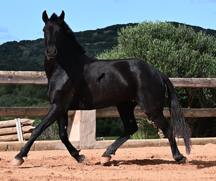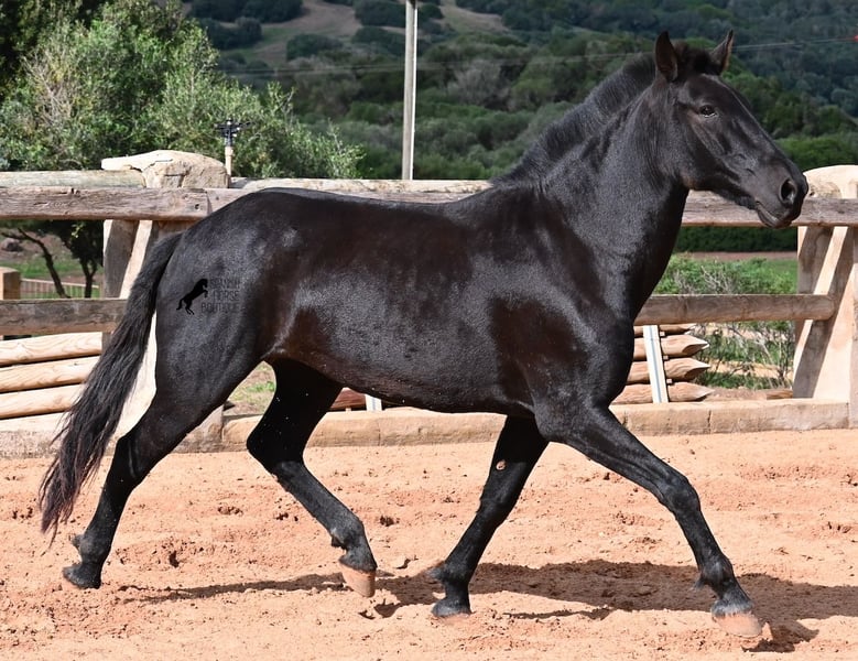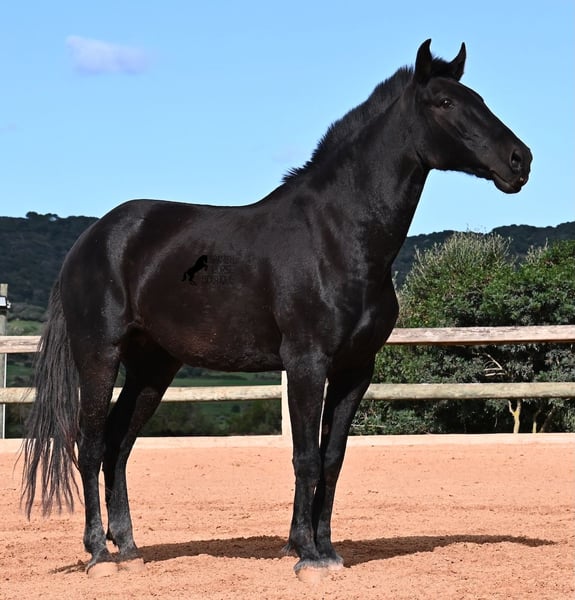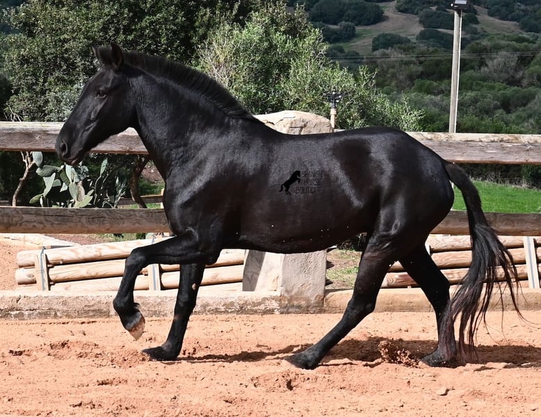 This 2017-born purebred Menorquín mare is in the prime of her life and at the perfect age to explore new paths. She is a licensed breeding mare and has foaled before, demonstrating her qualities as a mother. Currently, she is not in foal, so if desired, she can be started under saddle directly on-site, making her suitable for those who prefer not to train her themselves. Her movement is impressive and she will appeal to many disciplines—both as a riding and driving horse. For those interested in breeding, her pedigree is excellent, as her sire is one of only three elite stallions of the breed, from whom she inherited her very good movement. On her dam’s side, she descends from the original lines of Menorquín horses, known for producing particularly enduring and resilient animals. A classic English training approach can be organized on-site, as well as horsemanship training! She lives on many hectares of land in 24/7 turnout, making her very hardy and sure-footed. With a height of 160 cm and her baroque exterior, she is very harmoniously built and has no white markings. Videos and pedigree details are available upon request. Her location is Menorca. I am happy to arrange a veterinary examination, transportation, or her travel if you wish to view her in person. Further details can be found on my page or discussed directly. Greetings from Spain
