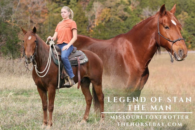If you want a horse that combines championship bloodlines with real-world dependability, Stan is your man. Stan is sired by Jester’s Charming Legend, a six-time MFTHBA Top 5 Stallion whose offspring include multiple World Grand Champions like Oh Yeah, Charming Millie, and Time to Tango. His dam, Fax Anne, was officially inducted into the MFTHBA Hall of Fame in 2025, known for her incredible heart, smooth gait, and willingness in the show ring and on the trail. Together, this cross blends beauty, brains, and the signature Fox Trot smoothness that makes every mile enjoyable. But what really makes Stan special isn’t just his papers — it’s his personality. This horse has the kind of mind that gives you confidence out on the trail. He’s steady, sure-footed, and not one to get rattled by new places, wildlife, or long hours under saddle. He carries himself like the fancy horse that he is and loves to step out with a velvety-smooth gait. But don’t let the fancy fool you — Stan truly lives his best life out on the trail and has no problem getting down and dirty when you need him to. Stan loads easily, stands tied, clips, bathes, and handles like a gentleman. He’s been exposed to dogs, tractors, traffic, barn cats, barn dances, and all the usual (and unusual) commotion of ranch life — and he takes it all in stride. * Highlights * • Six-time Top 5 Stallion lineage (Jester’s Charming Legend) • Out of MFTHBA Hall of Fame mare Fax Anne • Proven World Grand Champion bloodlines • Exceptionally smooth, natural gait • Confident and reliable on the trail with fantastic stamina Stan has the pedigree to impress and the personality to make you fall in love. Smooth, steady, and always ready to go — Stan makes every trail feel easy.