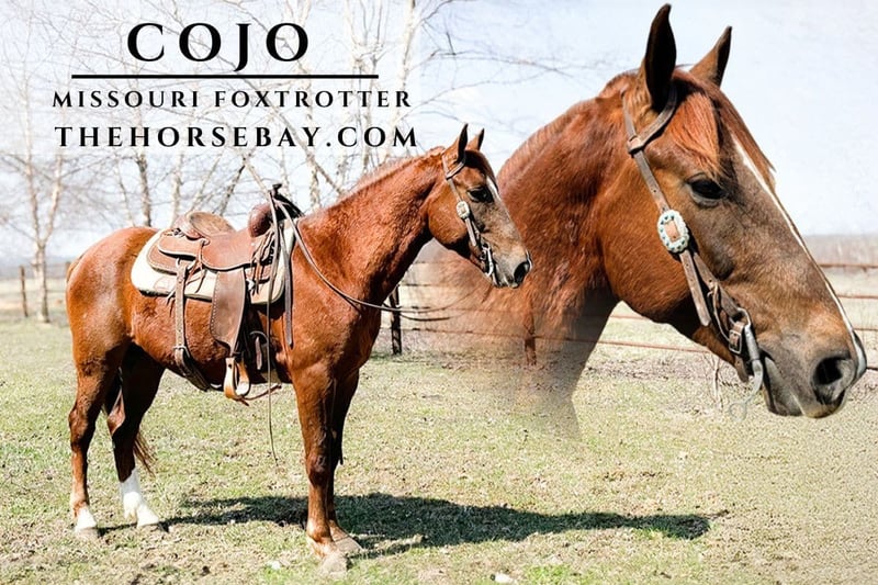 OPEN BIDDING ON THEHORSEBAY,COM. SALE ENDS ON 04/02 More information is available on the website, including an UTD vet inspection, Coggins, video, images, and the owner's contact information to ask questions, request information, or make arrangements to come to visit. Cojo is a 6-year-old fox trotter gelding, standing 15 hands. Cojo is a quiet-natured gelding that has been trail-ridden for numerous miles. He has a smooth 4-beat gait and a rocking chair canter. Cojo stands perfectly for mounting and dismounting and is excellent for the farrier. Cojo will ride alone or in a group and go anywhere you point him. We have also driven Cojo everywhere, from uptown to county roads. Nothing seems to bother him. Cojo is a nice gelding anyone can get along with.