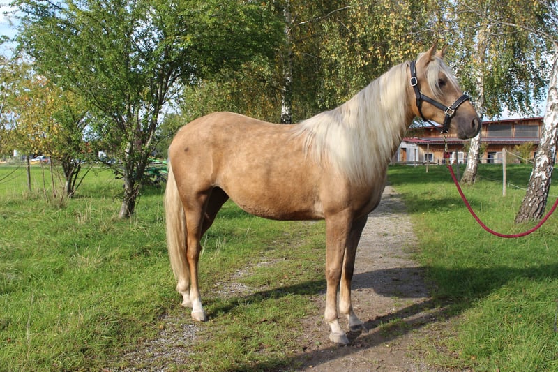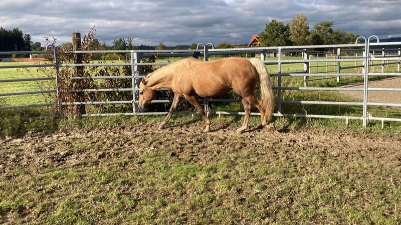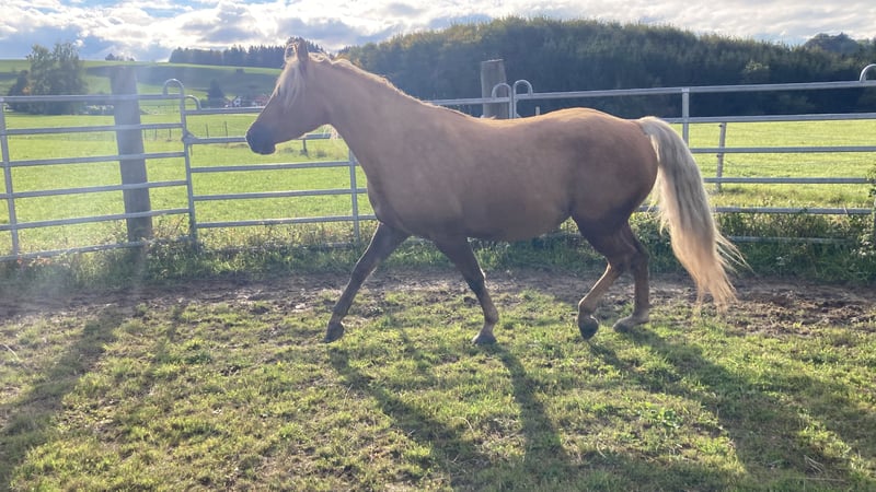 Verkaufe elegante Missouri Fox Trotter Stute – Palomino, geb. 2020 Diese wunderschöne Missouri Fox Trotter Stute besticht durch ihre anmutige Erscheinung und ihr angenehmes Wesen. Geboren im Jahr 2020, ist sie bereits gut ausgebildet und zeigt einen ausgeprägten Gang, der für ihre Rasse typisch ist. Mit einem Stockmaß von 150 cm ist sie ideal für Reiterinnen und Reiter, die ein zuverlässiges und charakterstarkes Pferd suchen. Sie ist freundlich im Umgang, lernwillig und eignet sich sowohl für Freizeitritte als auch für ambitionierte Turnierreiter. Das elegante Palomino-Fell macht sie zu einem echten Blickfang auf jedem Turnier und bei jedem Ausritt. Bei Interesse oder weiteren Fragen stehe ich gerne zur Verfügung. Vereinbaren Sie gerne einen Termin für eine Besichtigung und eine Proberunde! Weitere Verkaufspferde auf Anfrage.