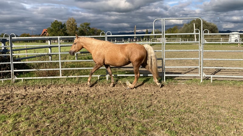 Elegant Missouri Fox Trotter Mare – Palomino, born 2020 This beautiful Missouri Fox Trotter mare impresses with her graceful appearance and gentle temperament. Born in 2020, she is already well-trained and displays a pronounced gait characteristic of her breed. Standing at 15 hands (150 cm), she is ideal for riders seeking a reliable and spirited partner. She is friendly, eager to learn, and suitable for both leisure riding and ambitious competitive riders. Her elegant Palomino coat makes her a true eye-catcher at any competition or trail ride. For inquiries or further questions, please feel free to contact me. You are welcome to arrange a viewing and a test ride! Additional horses available upon request.