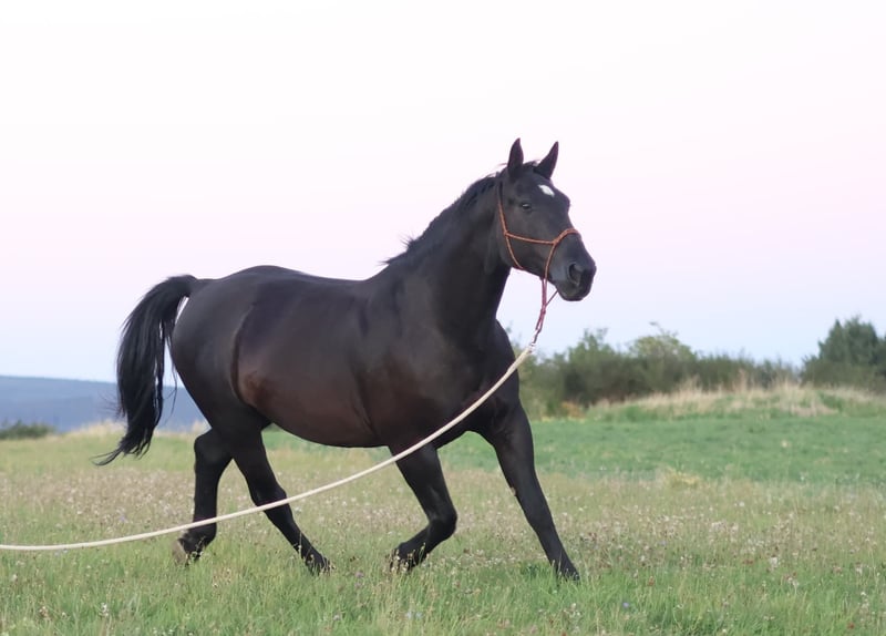 WEGEN HALTUNGSAUFGABE! Und aufgrund von Zeitmangel suchen wir für unseren 11 jährigen Moritzburger, Mathias, ein neues Zuhause. Mathias ist brav im Umgang und unterm Sattel. Er ist ein eher ruhiger Zeitgenosse mit schönen schwungvollen Grundgangarten und ist trotz seines Stockmaßes von 167,5 cm stets zu handeln. Er braucht einen Menschen, der ihm Sicherheit vermittelt, dann fasst er schnell Vertrauen und geht mit einem durch Dick und Dünn. Er läuft barhuf und ist entwurmt. Er wurde als Saugfohlen prämiert. Bei ernsthaftem Interesse freuen wir uns über eine Nachricht.