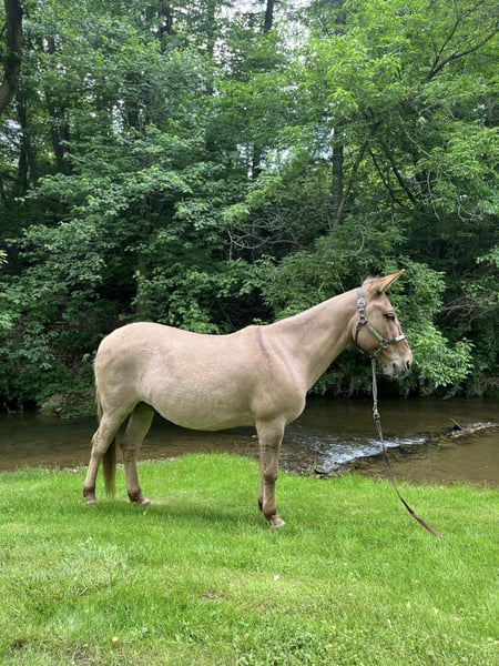 ONLINE AUCTION Place your bids at www.PlatinumEquineAuction.com Starting Bid $3500 Auction ends June 9th, 2024 Need a new saddle? Check out White Rock Saddles on our website or Facebook! Homer is a 9-year-old buckskin/dun john mule with a loving disposition. He stands 14.1 on the stick. We have known him for three years and owned him the last two. Homer is being offered for sale by no fault of his own. This mule has experiences of every kind. He has traveled from Texas to Arkansas to Pennsylvania. He has been extensively trail-ridden through all kinds of terrain and confidently navigates through thick woods and deep waters. He will ride in company or by himself and easily competes in trail competitions. Homer moves off your leg, side passes, neck reins, and is soft to the bridle. Homer was taught to lay down to mount and dismount, but will also stand to get on and off. Point his nose, and he will do just as you want. With his “get to work” attitude Homer works cattle, opens gates, plows fields, pulls carriages, ponies race horses, and flags babies. He also gives beginner and intermediate riding lessons. Reach out for more information about his work. Homer is a consistent ride and the same ride every time. He’s big ears and bray will be missed around the farm. Homer is one of a kind. Located in Cochranville, PA. Contact Chris Tejero 484-326-4618 with any questions. ONLINE AUCTION Place your bids at www.PlatinumEquineAuction.com Starting Bid $3500 Auction ends June 9th, 2024 Need a new saddle? Check out White Rock Saddles on our website or Facebook!