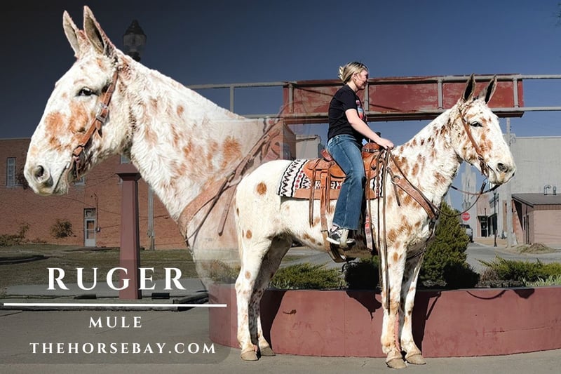 OPEN BIDDING ON THEHORSEBAY,COM. SALE ENDS ON 04/02 More information is available on the website, including an UTD vet inspection, Coggins, video, images, and the owner's contact information to ask questions, request information, or make arrangements to come to visit. Ruger is a 10-year-old mule standing 15.2 hands tall. He’s a calm and willing companion who will go wherever you point him—whether that’s crossing water, navigating over logs, tackling steep hills, or cruising down a trail. Ruger is a relaxed and easy-going mule, standing quietly for baths, clipping, and saddling. He’s simple to catch and isn’t easily spooked. Ruger rides well alone or in a group and is traffic-safe, having been ridden all around town. He truly is a gentle giant, always dependable and ready for any adventure.