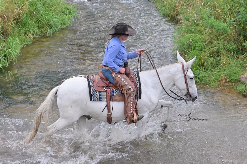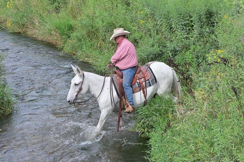🍁DER HERBSTLICHE SPEKTAKEL🍁 läuft jetzt bis MONTAG, 22. SEPTEMBER – exklusiv auf der Website von HorseBid! Weitere Details und Anmeldung unter: www.Horsebid.com VERKÄUFERKONTAKT: Rafter D Mules, 651-303-7056 STANDORT: Hastings, Minnesota RASSE: Maultier Zugelassen: Nein FARBE: Grau HÖHE: ca. 15 Hand ALTER: 12 Jahre Geschlecht: Hengst-Maultier (John Mule) Blue ist ein vielseitiger Maultier, das wir mit Stolz anbieten. Er gehört seit mehreren Jahren zu unserer privaten Herde! Blue ist der Typ, der immer zuverlässig ist. Er wird bei jeder Reitgelegenheit gleich bleiben, egal wie viel Zeit seit dem letzten Ritt vergangen ist. Blue ist für Reiter aller Altersgruppen und Erfahrungsstufen geeignet. Man kann ihm vertrauen, dass er ehrlich ist und auf jeden Reiter, der auf seinem Rücken sitzt, vertrauensvoll reagiert. Er ist sowohl im Reitplatz als auch auf der Ranch gewohnt zu arbeiten und scheut keine harte Arbeit. Blue wurde bereits in unwegsamem Gebirge, auf Trails, durch umgestürztes Holz, große Flüsse und über alle Gräben oder steile Abhänge geritten, die man sich vorstellen kann. Er ist leicht bridlegerecht, gepflegt, gekürzt und eingeritten. Blue ist nicht empfindlich gegenüber Geräuschen an den Ohren und verhält sich beim Umgang mit den Hufen stets vorbildlich. Er lässt sich problemlos vom Boden oder einer Aufstiegshilfe aus satteln. Wenn Sie nach einem Maultier suchen, das die ganze Familie genießen kann und das trotzdem zuverlässig für Arbeitseinsätze ist, haben Sie es gefunden! Bei Fragen zu Blue oder wenn Sie ihn vor Ende der Auktion persönlich kennenlernen möchten, wenden Sie sich bitte an Dillon bei Rafter D Mules unter 651-303-7056.