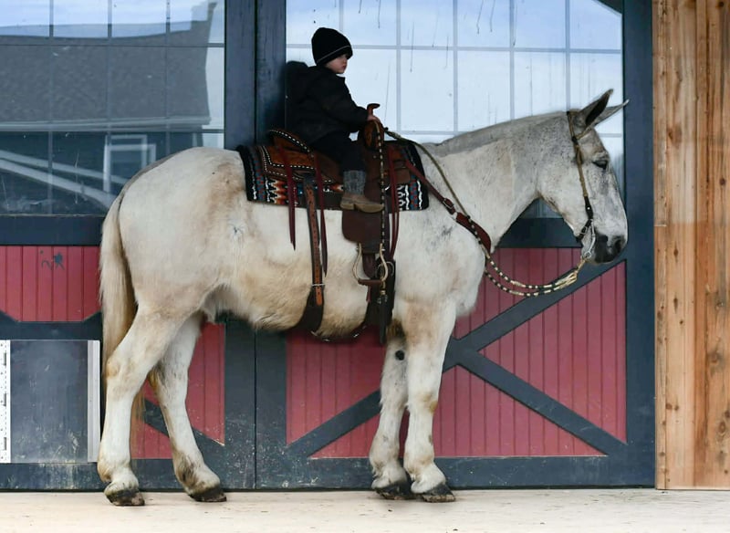 "AVAILABLE ON ONLINE HORSE AUCTION AT www DOT PlatinumEquineAuction DOT com BIDDING OPEN NOW thru SUNDAY | APRIL 5TH! *Final price will be determined on auction site* CONSIGNOR CONTACT INFO: Marlis Farms 814-777-0607 (Calls Only) LOCATION: Rebersburg, PA Zac as we call him is a 16.2 Grey 14 Yr Old John Mule that is broke to ride and drive. He is quiet and easy to be around. He has a comfortable walk, trot, and canter. He is a seasoned trail mule. He goes over logs, through water and wherever you point him with no hesitation. He is well seasoned to rough terrain and will ride all day. Zac is also broke to drive. He can drive alone or in a team. He is well adapted to traffic and town commotion. Zac is gentle and loves attention. He will take care of his rider whether in the arena or outside. He stands to be clipped and washed as well as tacked and mounted. He does well inside or turned out in a mixed herd. He loads and unloads without a problem. He sells sane, sound, and ready to move into his forever home. For more information, call Mark with Marlis Farms at 814-777-0607 (calls only). We can help arrange shipping anywhere.
